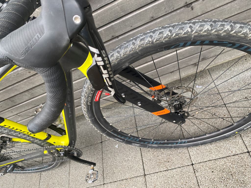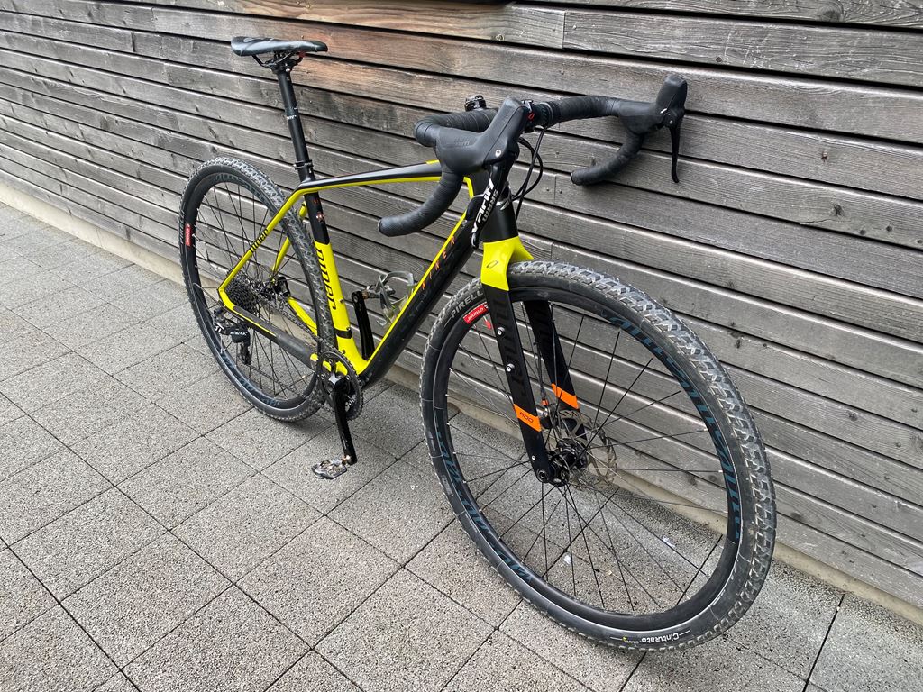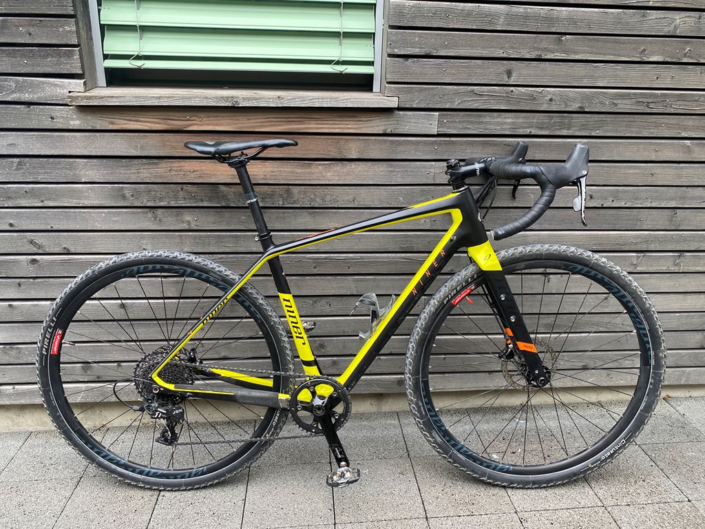 - Sportliches, hochwertiges und sehr robustes Gravel Bike mit Carbonrahmen und -gabel. SRAM Apex 1x11 Gruppe, Niner Komponenten. Klickpedale Shimano XTR inklusive. Die Pirelli-Reifen haben nur ca. 100km. Knapp 9.8 kg inklusive Pedalen und den relativ breiten, stark profilierten Reifen. Dazu gibt es neue Ersatzpneus (Pirelli), Bremsscheiben und -beläge. Niner fertigt ihre Gravelbikes nach MTB-Fertigungsstandards, womit auch Renneinsätze oder anspruchsvollere Trails inkl. kleineren Jumps kein Problem sind. Das Bike fährt sich auch im gröberen Geläuf angenehm komfortabel und ruhig. Sehr guter Zustand, leichte optische Gebrauchsspuren. Nur ca. 1500km gerollt, keine Stürze oder Rennen, kein Wintereinsatz. Funktionieren tut alles bestens, die hydraulischen Scheibenbremsen bräuchten in den nächsten Monaten mal einen Service (Ersatz Bremsflüssigkeit). Besichtigung und kurze Probefahrt möglich und erwünscht. Kein Versand. Privatverkauf, somit keine Garantie/Gewährleistung.
