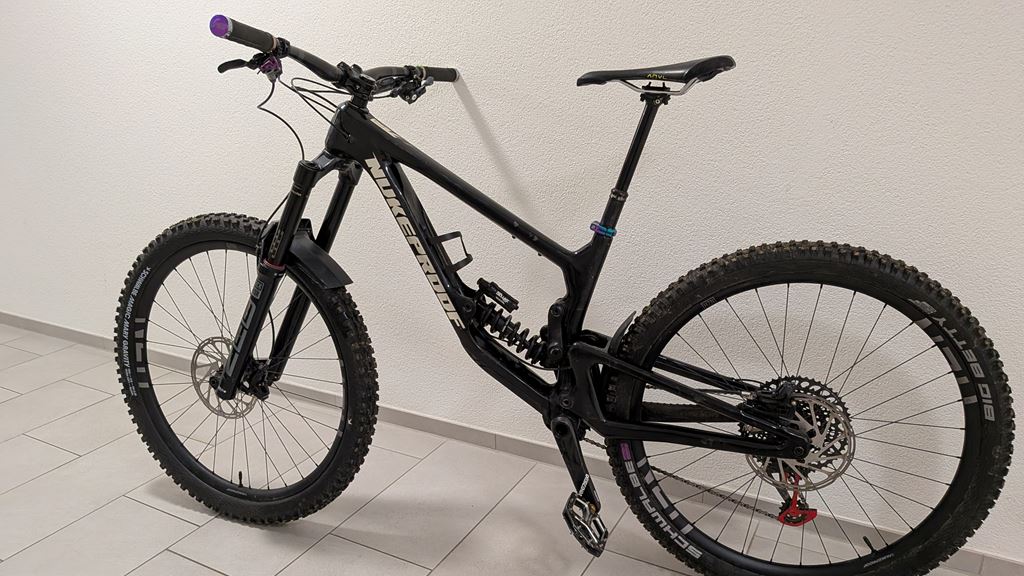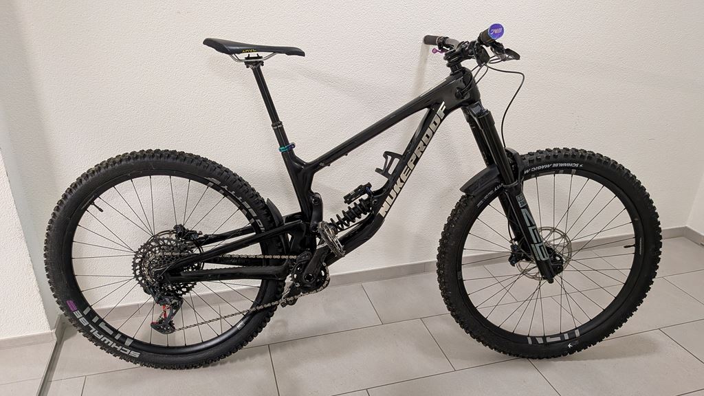 - Zu Verkaufen steht ein Nukeproof Giga RS Coil von 2023, Rahmengrösse M (170-180cm, ich bin 174cm). Bike weist normale Gebrauchsspuren auf. Ist mit Klarsichtfolie ab Werk abgeklebt. Wurde hauptsächlich im Bikepark bewegt, Tagestouren sind nicht zu empfehlen, Bike wiegt so wie es da steht, ca. 17kg. Das Bike ist im Bikepark und auf anspruchsvollen Endurostrecken am besten aufgehoben. Ist eigentlich ein kleiner Downhiller, das man einigermassen noch pedalieren kann. Entgegen der Originalauslieferung wurde das Schaltwerk auf eine Mechanische x01 gewechselt (kein AXS). - Beide Reifen neu (siehe Beschreibung) - Dämpfer ab Service (Frühling 2025) - Beläge neu - Trigger der Sattelstütze neu (RaceFace) - Gabel ist aktuell im grossen Service bei Suspension Center (Stand: Ende Januar 2026) - Schaltwerk sollte neu eingestellt werden - ohne Pedale Anbei die Zusammenfassung der Parts aus dem Netz, von mir noch angepasst: Rahmen: Giga 29 Rahmenmaterial: Carbon Gabel 180mm: RockShox Zeb Ultimate Charger 2.1 RC2 180mm, 44mm Offset, BOOST, Debonair, Black Dämpfer 180mm: RockShox Super Deluxe Ultimate RCT Coil, 205x60mm, Bearing End, Spring MD/L:450lbs (ich bin ca 90kg, ist das obere Limit) Schalthebel: SRAM Eagle 12-Speed, Black Schaltwerk: SRAM XO1 Eagle 12-Speed, Black/Red Kurbel: SRAM Descendant Carbon Eagle 12-Speed, 170mm, 30T, B148, DUB Kassette: SRAM XO1 Eagle 12-Speed, CS XG1295 EAGLE 10-52T Kette: SRAM GX Eagle 12-Speed Bremsen: SRAM Code RSC, Bremsscheiben Ø 200/200 Felgen: Nukeproof Horizon V2, 29", 6 Bolt, XD Driver, 148x12mm Vorderradnabe 32H: Nukeproof Horizon V2, 29", 6 Bolt, 110x15mm Hinterradnabe 32H: Nukeproof Horizon V2, 29", 6 Bolt, XD Driver, 148x12mm Vorderreifen: Schwalbe Magic Mary Gravity Radial 29" x 2.5, ultra Soft Hinterreifen: Schwalbe Big Betty Super DH 29" x 2.4, ultra Soft Sattelstütze: Bikeyoke Revive Stealth with RaceFace Triggy Violette, 160mm drop Vorbau: Nukeproof Horizon, 45mm, Black Lenker: Nukeproof Horizon Carbon V2 25mm Rise, Width - M780mm Probefahrt und Besichtigung erwünscht, Raum Interlaken oder Thun (z.B. Rabeflue Trail in Thun, ist ganzjährig offen). Aktuell ist die Gabel im Service bei Suspension Center