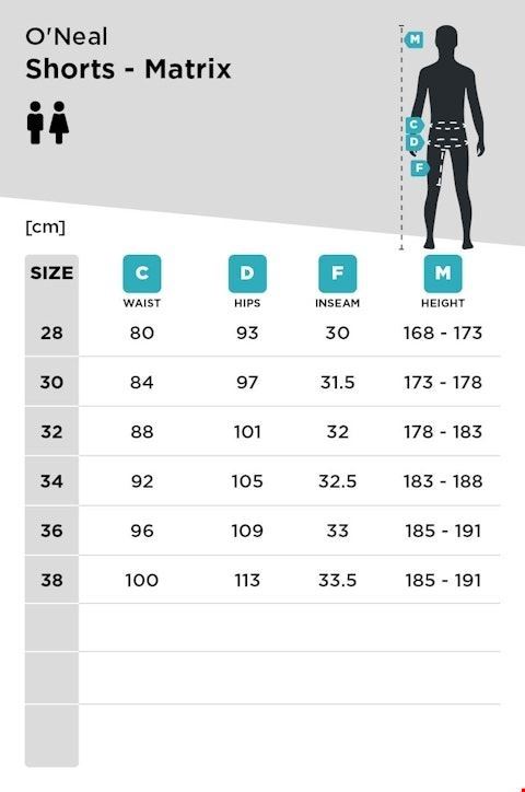 - Mit den O'Neal Matrix MTB-Shorts bekommst du High-Performance-Gear, das dich zuverlässig vor Verletzungen sowie Wind und Wetter schützt. Eigenschaften: • Schutz trifft auf Komfort • Besonders sicherer Sitz • Seitentasche mit Reißverschluss Grösse 34 Zwei Stück verfügbar Grössentabelle : Siehe letztes Foto Jetzt lohnt sich ein Blick auf meine weiteren Inserate – bei mehreren Artikeln profitierst du von gespartem Versand :)