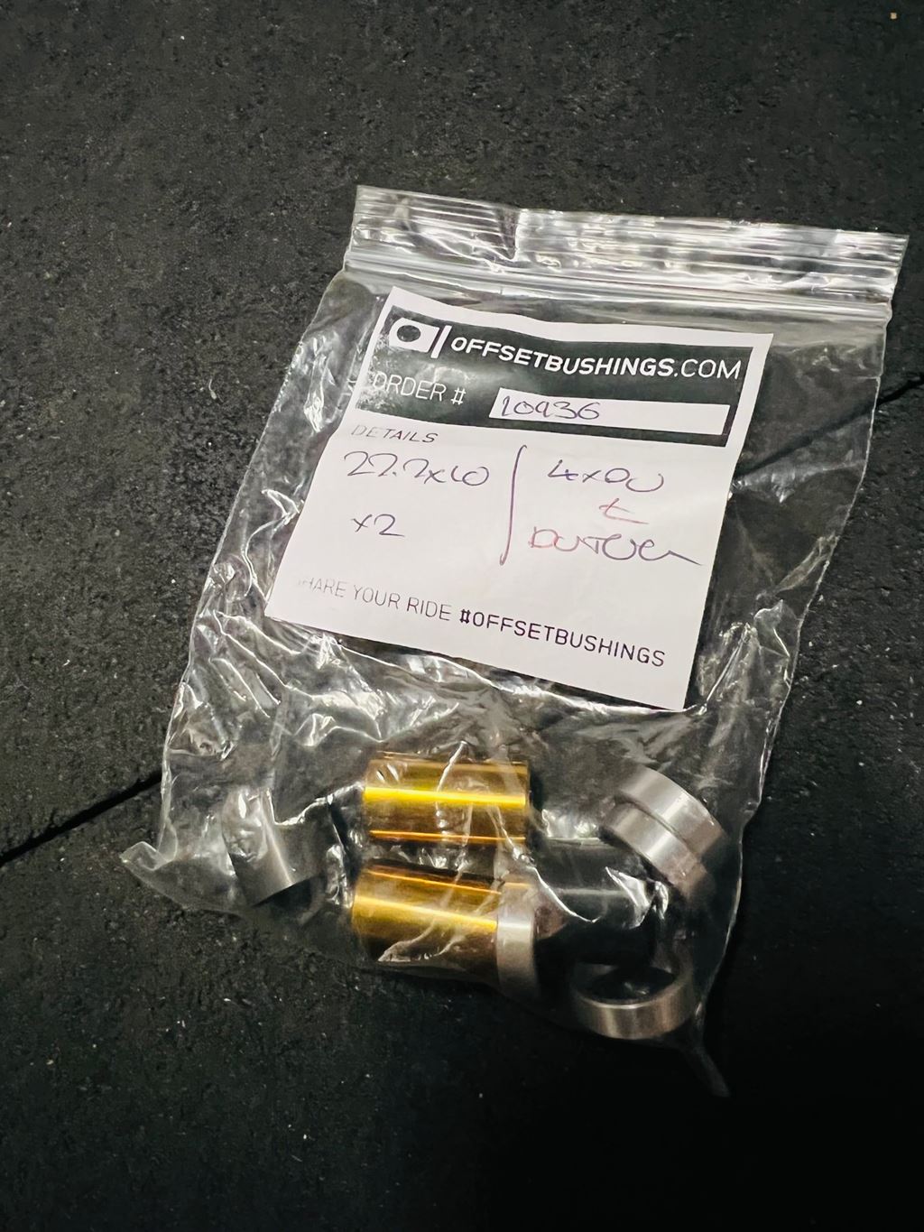 - 2x Offset Bushings (set) Size: 22.2 x 10 mm Perfect fit for e.g. Commencal Supreme DH V3 frame + Fox X2 shock and every other frame/shock combo with same fitting dimensions.