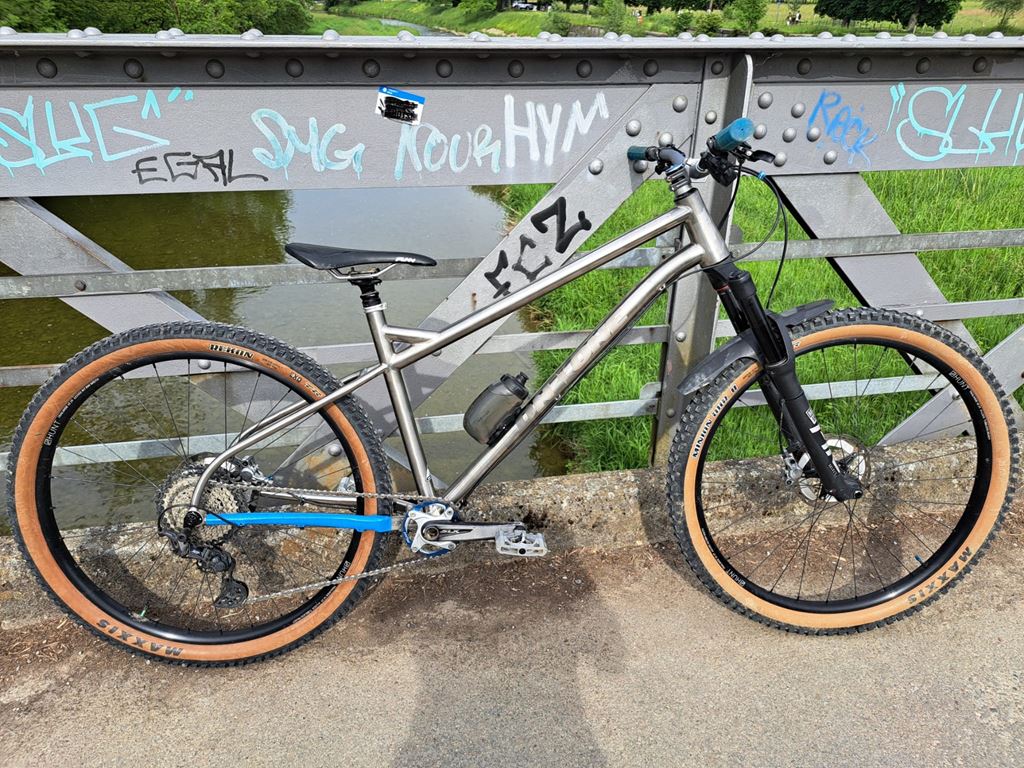 - https://www.bikeperfect.com/reviews/on-one-wrekker-titanium-hardtail-mtb-review Rahmen fur 700chf: Neuwetig Titan On-One Wrekker Large 2024 2.2kg rahmen 10-15 mal gefahren Downcountry big hit Machine. Kann als XC benutzen werden, gleichzeitig DH und Grosse Sprungen einfach machen. Velo 1700chf: 12.7kg ohhe pedale (trail setup) Voll Fahrrad mit RS Pike Stark and light Hunt Trail V2 wheels Shimano XT Antrieb SLX / Alfine Polished Bremse Neuwertig fast rolling trail tyres