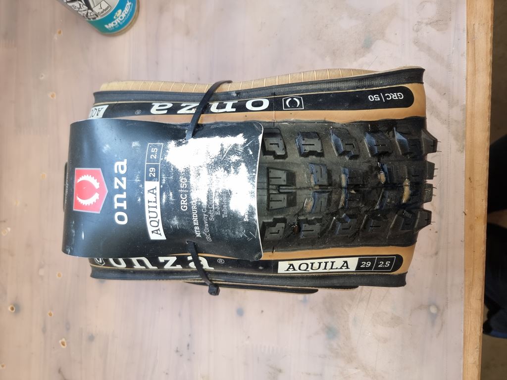 - Ich verkaufe hier einen von vielen Fehlkäufen. Es ist ein Brandneuer Onza Aquila Reifen mit GRC Karkasse (Gravity) in der Grösse 29x2.5 im weisswand Design. Ich bin eine Zeit lang Onza gefahren, mir persönlich gefallen aber andere Marken besser. Dieser Reifen war ein Ersatz, welchen ich nicht mehr brauche. Ich bin am ausmisten! Sieh dir doch auch meine anderen Angebote an! Gruss Hurti