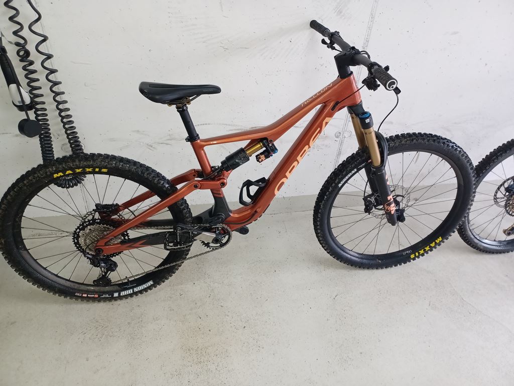 - Das Bike wurde einmal gefahren (ca. 20km) - somit wie neu. Grosser Fender wurde angebracht, Mullet, wird ohne Pedale verkauft, Twint vorhanden Ausstattung: Bereifung: Maxxis Assegai 2.50" WT FB 120 TPI 3C Maxx Terra EXO+ TR Bremse: Shimano XT M8120 Hydraulic Disc Farbe: Mars Red - Black Federweg: 170 Gabel: Fox 38 Float Factory 170 Grip2 QR15x110 Kashima Groesse: M Kassette: Shimano CS-M8100 10-51t 12-Speed Kettenführung / Kettenschutz: e*thirt. CL55 30-36t black Kurbelgarnitur: Race Face Era 32t Material: Carbon Radgröße: 29F/27.5R Radsatz: Oquo MC32TEAM, alloy hookless rim, DT350 hub, Shimano MS, 30mm inner width, Sapim D-Sprint sp. Rahmen: Orbea Monocoque Race Carbon. Advanced Dynamics 167mm suspension technology. 29" wheels.Concentric Bo Sattel: ERGON SM Enduro Comp Men S/M Sattelstütze: Fox Transfer Factory Kashima Dropper 31.6 Schalthebel: Shimano XT M8100 I-Spec EV Schaltwerk: Shimano XT M8100 SGS Shadow Plus Spezialfarbe: Mars Red (Gloss) - Black (Matt)