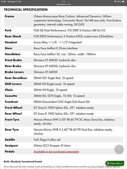- Verkaufe mein Orbea Rallon aus dem Jahr 2021, das Factsheet findest du unter den Fotos. Das Bike kommt frisch ab einem grossen Service und wurde danach nur 1x gefahren. Was alles gemacht wurde findest du ebenfalls unter den Bildern. Zudem ist das elektrische Schaltwerk SRAM GX Eagle AXS auf dem Bike. Das Bike hat immer Freude gemacht, wird aber mittlerweile zu wenig gebraucht und sucht deshalb einen neuen Besitzer der es artgerecht benutzt ;-)