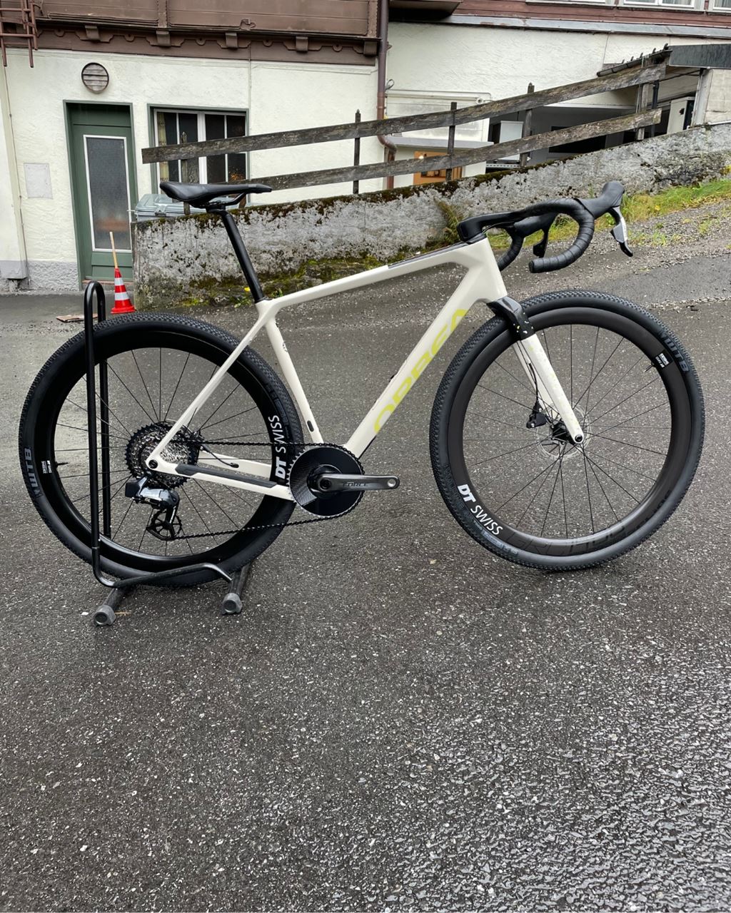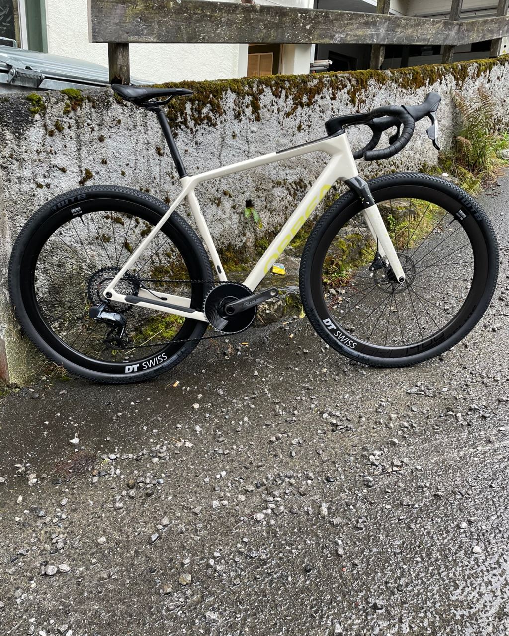 - Zum Verkauf steht ein top ausgestattetes Orbea Terra in der stylischen Farbe Ivory White – Spicy Lime (Gloss). Das Bike kombiniert Leichtigkeit, Steifigkeit und Komfort – perfekt für Gravel-Abenteuer, schnelle Strassenetappen oder lange Touren. Technische Daten Rahmen: Orbea Terra OMR Carbon, monocoque construction, Thru Axle 12x142mm, internes Kabelrouting Gabel: Orbea Terra ICR, Full Carbon, Thru Axle 12x100mm Grösse: M (Unisex) Laufräder: DT Swiss GRC 1400 50 Reifen: WTB Vulpine 45 mm Schaltung: SRAM Force AXS XPLR, 12-fach (kabellos) Kassette: XG-1271 D1 XPLR 10-44 Kurbel: SRAM Force Aero 48T Bremse: SRAM Apex Disc Lenker: Ridley Forza Cirrus Pro Carbon, integriert Sattelstütze: SP 0.2 Carbon, 27.2 mm, Setback 0 Sattel: SQlab 612 ERGOWAVE® R ltd. Team Carbon 12cm (nicht wie auf Bildern) Schaltwerkskäfig: CeramicSpeed OSPW System – für maximale Effizienz und minimierten Reibungsverlust Material: Vollcarbon Gewicht: 8.7kg Highlights: Hochwertiger Carbonrahmen für optimale Performance und Komfort Modernes, kabelloses SRAM AXS Schaltsystem CeramicSpeed Oversized Pulley Wheel (OSPW) für butterweiche Schaltvorgänge und höhere Antriebs-Effizienz Laufruhig und dennoch agil – ideal für Schotter, Asphalt und leichte Trails Zustand: Sehr gepflegt und technisch einwandfrei.