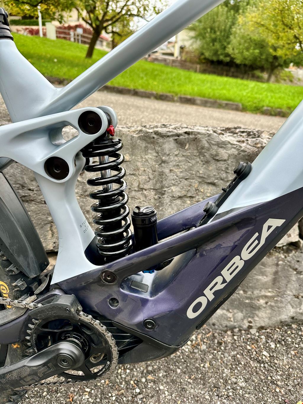 - Enduro E-Bike: Orbea Wild FS M10 Neupreis: 9200.- Modeljahr: 23/24 Grösse: L (177cm – 188cm) Km: 2023 km Akkukapazität: 750 Wh Motor: Bosch Performance CX Gen4 Ramen: Carbon Federweg: Vorne 170mm, hinten 160mm Gabel: FOX 38 (Umgebaut auf Coil mit «Vorsprung Smashpot») Dämpfer: DVO Coil 205x65 Schaltung: Shimano XT 12-fach Bremsen: Shimano XT Räder: 29″ Top Zustand, Sturz und Unfallfrei Ab Service Auf Wunsch kann auch ein komplettes Luftfahrwerk eingebaut werden. RockShox ZEB Gabel und ein FOX X2 Dämpfer. Besichtig und Probefahrt ist natürlich möglich.