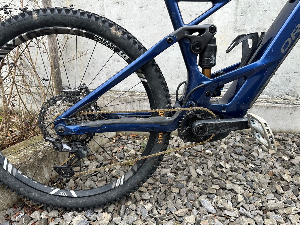- Top eMTB Orbea Wild in Grösse XL mit Bosch CX Motor (4. Gen) und 625er Akku. Modeljahr 2022. Grössenempfehlung ca 175-188cm. Das Bike wurde gut gefahren (knapp 5000km) und weist einige Kratzer am Rahmen auf. Diese haben aber keine Auswirkung auf das Fahrverhalten. Das Bike besticht durch seine Highend Komponenten unter anderem mit: - leichter Carbon Rahmen (Custom Blue) - XTR Bremsen - XTR/XT Schaltgruppe - Fox 38 Factory Gabel - Fox X2 Dämpfer - Carbon Laufräder DT Swiss 1501 - Continental Bereifung (Kryptotal 2.4 hi, Argotal 2.6 vo) - beide Reifen mit Cushcore Felgenschutz - 6 A Ladegeät (schnelleres Laden) Das Bike kann gerne besichtigt und Probe gefahren werden.