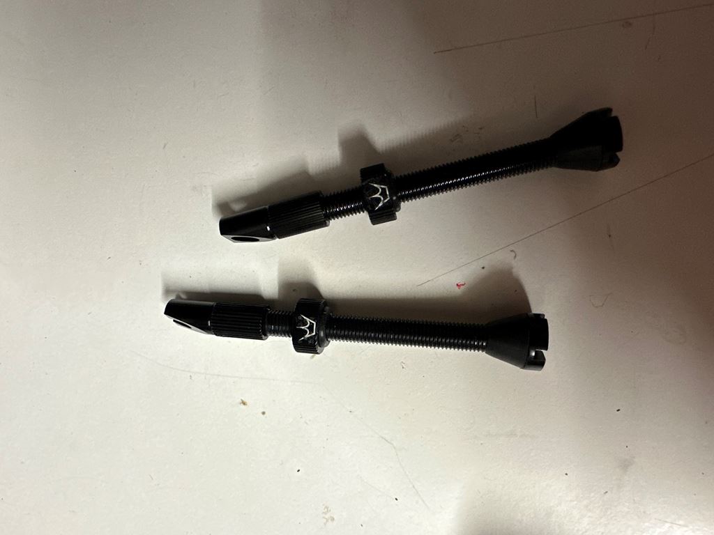 - Tubelessventil Peaty‘s, schwarz, 60mm. Nie montiert, da zu lang.