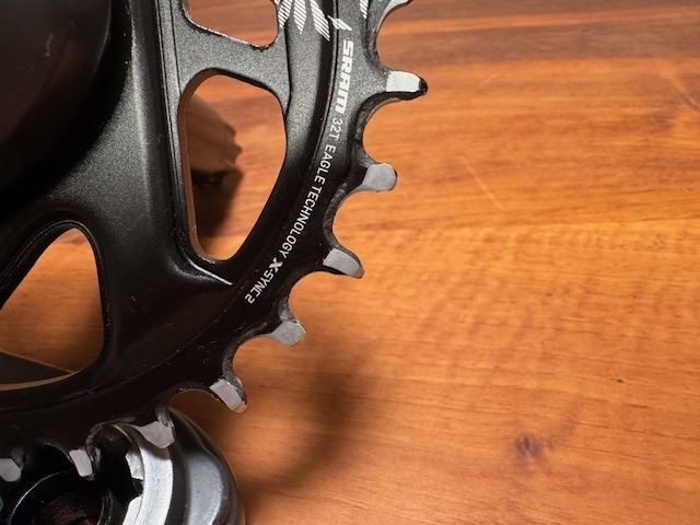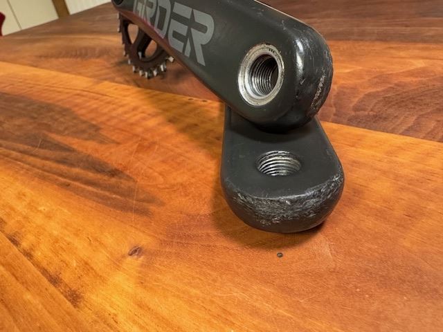 - Gebrauchte, ehrliche Kurbel ohne mechanische Einschränkungen. 170mm für diverse Kettenlinien geeignet (49-56mm je nach Offset des Kettenblattes). War 2 Jahre in Gebrauch. Kosmetische Beeinträchtigungen sind vorhanden (siehe Bilder). Mechanisch top. Bin die Kurbel an einem BSA Rahmen gefahren und gebe deshalb das passende BSA Lager zur Kurbel dazu. Lager laufen prima und haben noch einiges an Leben vor sich. Pedalgewinde sind einwandfrei. Mit dabei ist auch ein Kettenblatt (32t) für die 52m Kettenlinie (Boost). Bin das Kettenblatt bis zum Schluss gefahren, allerdings müsste dieses bald ersetzt werden. Kurbel und Lager wurden sauber gereinigt. Einbauen und losfahren!