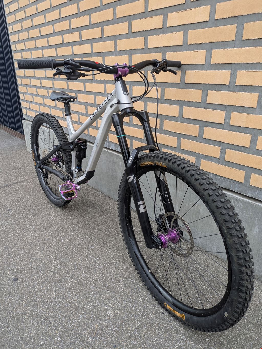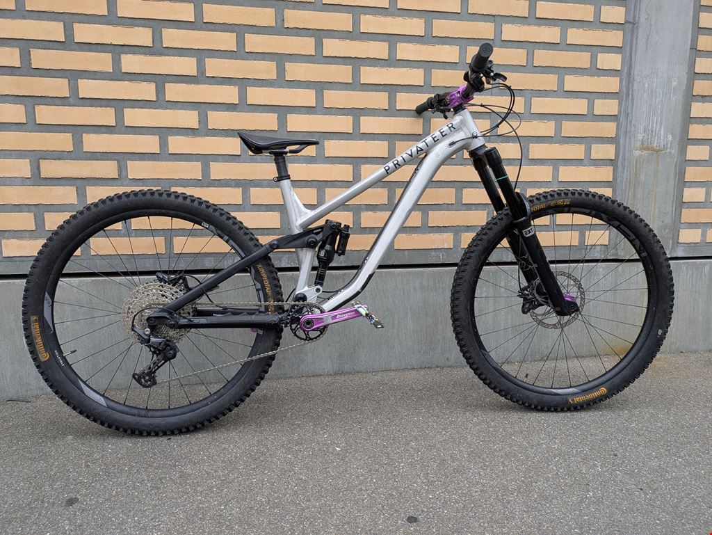 - Privateer 161 Enduro-Bike zu verkaufen. Das Bike wurde gebraucht und ist technisch tip top. Es weisst diverse Gebrauchsspuren auf, welche bei diesem Sport dazu gehören. Ideal für Leute, die hart fahren möchten aber nicht viel Geld ausgeben wollen! Es ist ein No-nonsense Bike mit richtiger Enduro-Geometrie: 64° HTA, 80° STA, 490mm Reach,... Das Bike wurde von mir komplett zerlegt, alles gründlich geputzt, verschlissene Lager ersetzt und wieder aufgebaut. Weitere Arbeiten: Bremsen frisch entlüftet. Fahrwerkservice vor wenigen Fahrtagen (aber schon ca. 1 Jahr her). Neuer Sattel und neue Griffe. Teile: - Rahmen: Privateer 161 in L mit 161mm Federweg - Dämpfer: Rock Shox Super Deluxe Air mit MegNeg-Luftkammer für mehr Coil-Feeling - Gabel: EXT ERA V2 mit 170mm Federweg - Räder: Hope Pro 4 Naben mit Newmen EG SL Felgen - Bremsen: Shimano Deore 4-Kolben mit 203mm Bremsscheiben (Hope und Trickstuff) - Schaltung: Shimano Deore 12-Gang - Kurbel: Hope Evo Cranks - Vorbau: Hope E35mm/35mm - Steuersatz: Hope ZS - Lenker: Levelnine Carbon 800mm breit - Dropper: OneUp V2 Das Bike kann in Zürich besichtigt und Probegefahren werden.
