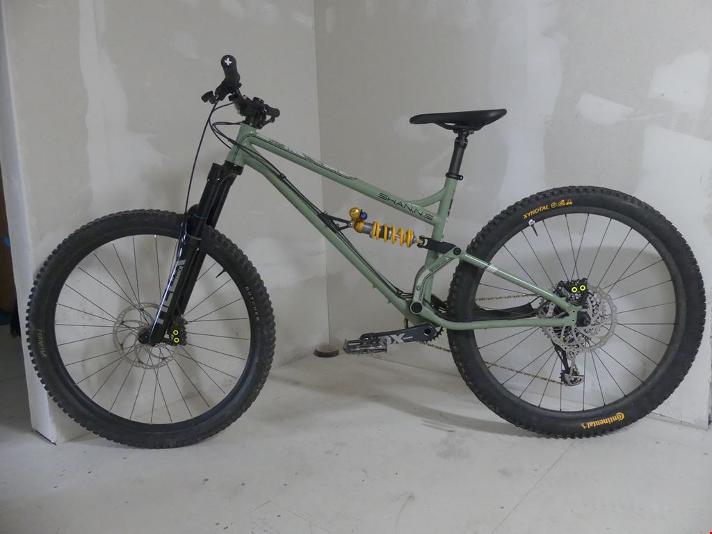 - Rahmen : Production Privée Rahmenset Shan 5 Grösse l Dämpfer : Öhlins TTX M2 210/55 neuwertig mit passendem Hinterbautune Inkl. Federn 434 Und 411 Lbs Gabel : Cane Creek Helm MK2 Coil 160 mm (bis 130-160 mm Travel ) mit Federn 65 und 60 Nm ,Standartfeder und lower Leg Service Kit) eine halbe Saison gefahren . Sattelstütze : Kind Shock Lev 170 mm Sattel : Ergon SM Enduro ,Neu Steuersatz : Production Privee Innenlager : Sram Dub Vorbau : Sixpack Millenium Lenker : Sixpack Millenium Bremsen : Magura MT 5 , 200 mm Kurbel : Sram X01 DUB Pedale : Tatze MC Air Schaltung : Sram X01 Kassette : Sram X01 Kette : KMC X12 TI , Neu Laufräder : BC oder Fun Works AM Ride 30 mit Hutchinson Griffus LAB Pneu