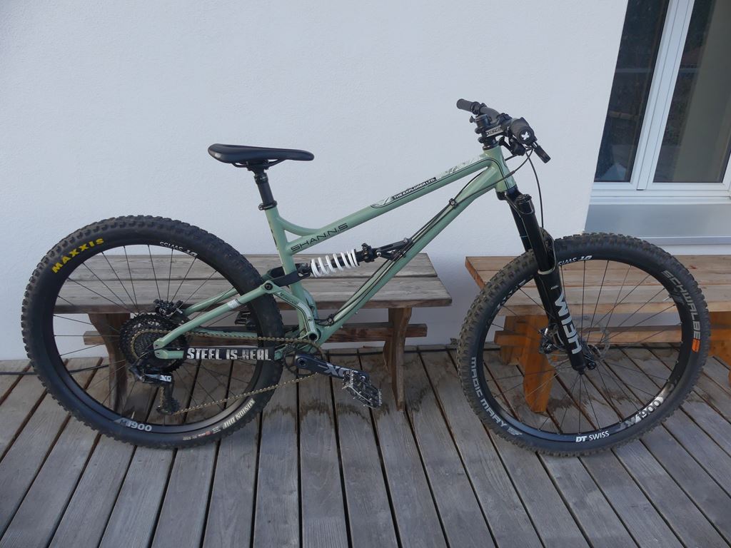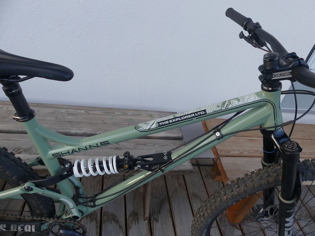 Rahmen : Production Privée Shan 5 Explorer Grösse L Dämpfer : Fox Float DBS 210 / 55 Gabel : Cane Creek Helm MK2 Coil 160 mm Sattelstütze : Kind Shock Lev 170 mm Sattel : Ergon SM Enduro ,Neu Steuersatz : Production Privee Innenlager : Sram Dub Vorbau : Truativ Descendant Lenker : Pro Koryak 780 mm Bremsen : Magura MT 5 Kurbel : Sram X01 DUB Schaltung : Sram X01 Kassette : E - Thirteen Helix 9 - 50 Laufräder : BC Loamer MK2 Probefahrt erwünscht . Tel . 079 311 13 23