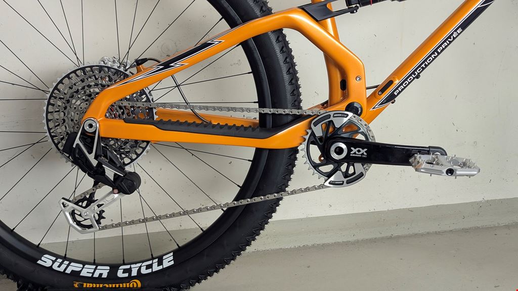 - Production Privée macht häufiger Sonderlackierungen, aber dies ist ein absolutes Einzelstück! Die Lackierung ist inspiriert von der Farbe Arancio Atlas, welche durch den Lamborghini Murciélago bekannt ist und gibt es nur ein einziges mal, weltweit! Die Ausstattung haben wir passend zur Lamborghini Inspiration sehr hochwertig spezifiziert, unter anderem mit einem Rockshox Flight Attendant Fahrwerk. Rahmen: Production Privée Shan 5 Gabel: Rockshox Pike Ultimate Flight Attendant Dämpfer: Rockshox SuperDeluxe Ultimate Flight Attendant Schaltung: Sram XX Eagle Transmission AXS mit Quarq Power Meter Bremsen: Formula Cura X 180/203mm Sattelstütze: Rockshox Reverb AXS 200mm Sattel: Beast Components Comfort (Carbon mit Lederbezug) Laufräder: SuperCycle E35 Carbon Reifen: Continental Magnotal Cockpit: SuperCycle Alu Vorbau & Carbon Lenker Das Bike kann bei uns im Laden besichtigt und Probe gefahren werden.