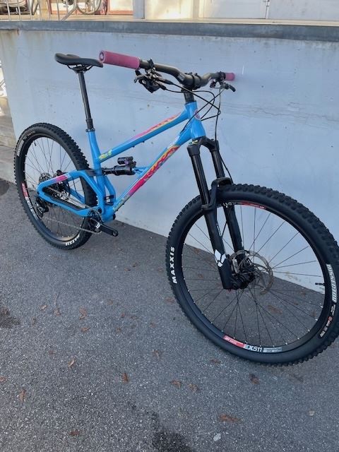 - Wir verkaufen unser Testbike Production Privée Shan 5 in SHAN 5 - Sweet blue Limited Edition. Das Bike ist wurde zu Testzwecken gefahren. Die Fahrdynamik dieses Bikes lässt keine Wünsche offen. Der Hinterbau ist steiff und sehr ruhig (kein Wippen). Das Bike lässt sich superleicht im Trail bewegen und bietet viel Ruhe und ist trotzdem sehr wendig und agil. Ausstattung: Rahmen: Shan 5 Stahl Dämpfer: Fox DPS Gabel: Formula Selva S schwarz Schaltung: Sram XO Eagle Bremsen: Formula Cura 4 Räder: Hanbdmade WTB I30 mit Super Cycle Naben Reifen: Maxxis Sattelstütze: Fox Transfer Lenker: Super Cycle Carbon Vorbau: Super Cycle 35mm Sattel: WTB