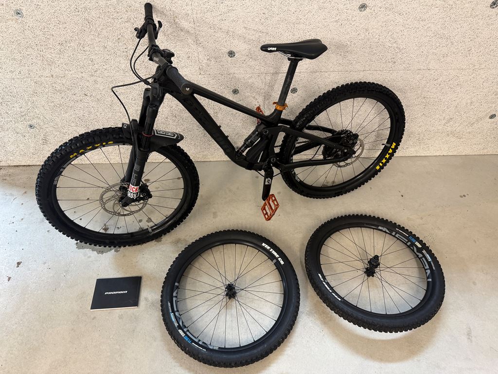 - YUMA 3 24"126" Fully 8 - 13 Jahre 130 - 160 cm 24" und 26" Laufräder Aluminiumrahmen 140 mm Federweg vorne 140 mm Federweg hinten Mittels eines Flip Chip können die Laufräder im Handumdrehen umgebaut werden. Das Yuma 3 ist in der Kategorie 5 eingeordnet und schreckt somit auch nicht vor grobem Gelände und großen Sprüngen zurück. Federgabel RockShox Reba 140 mm Dämpfer RockShox Deluxe Select R 140mm Bremsen SRAM Guide T 200mm / 180mm Laufradsatz Newmen Evolution X.A.25 Sattelstütze SIXPACK Sattelstütze Schaltgruppe SRAM GX (1x11) Schaltwerk SRAM GX (1x11) Schalthebel SRAM GX (1x11) Kassette SRAM XG-1150 10-42 Super Bike, das leider nicht oft gefahren wurde, daher guter Zustand. Abnutzungen und Zubehör gemäss den Bildern. Schaltung und Bremsen sind sauber eingestellt. Montiert sind die 26" Laufräder mit Maxxis Schlauchbereifung.