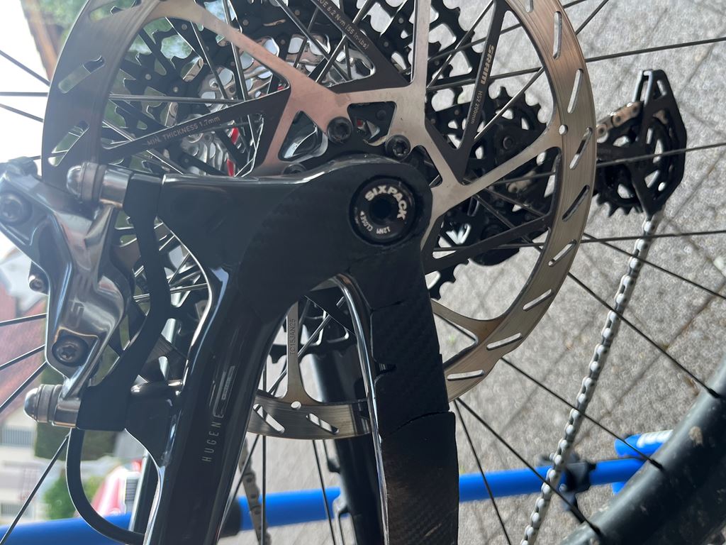- Hugene 2 CF Chainguide: SIXPACK Vertic Bashguard Brakeset: SRAM G2 Ultimate, SRAM HS2 Scheiben 200mm, Trickstuff Power beläge Handlebars: OneUp Carbon Handlebar 35mm Rise Stem: SIXPACK Millenium 35 Badge: Chrome Decals: Moongrey Bundle: SRAM T-Type GX Frame: XL - Raw Saddle: Ergon Enduro Comp S/M Seatpost: Bike Yoke DIVINE Sattelstütze 160mm Federgabel: Federgabel Fox 36 Float GRIPX2 Factory 29" 150mm Orange MY25 Shock: Fox Float X 2-Pos. Factory Tires: Wolfpack Cross 29x2.25 Tireset: Tubeless Wheelset: NEWMEN Beskar 30 Base/Light