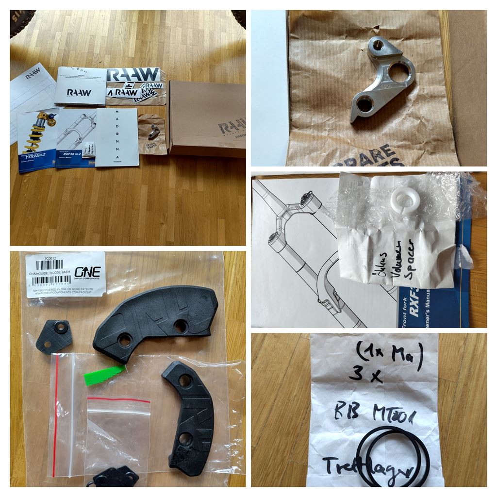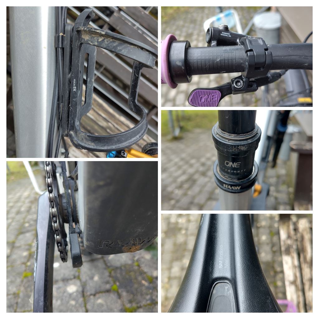 - Als Chassis Angebot bei Raaw gekauft, mit Shimano und OneUp Komponenten aufgebaut und selten gefahren. Das Bike ist auf harten Trails super laufruhig und auch uphill dank guter Öhlins Plattform effizient. Es hat Gebrauchsspuren, die Dämpfer wurden gewartet und das Bike indoor gelagert. Es ist an den wichtigsten Stellen foliert, teils muss die ersetzt werden (siehe Kurbel). Zum Bike kommen auch einige spare parts zum Bike, chainguide und Dämpfung.