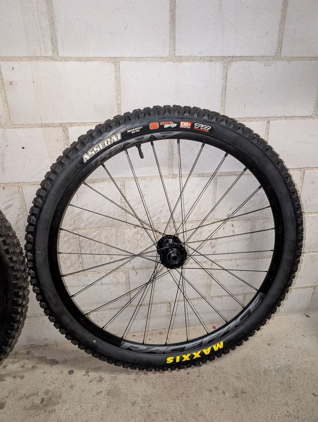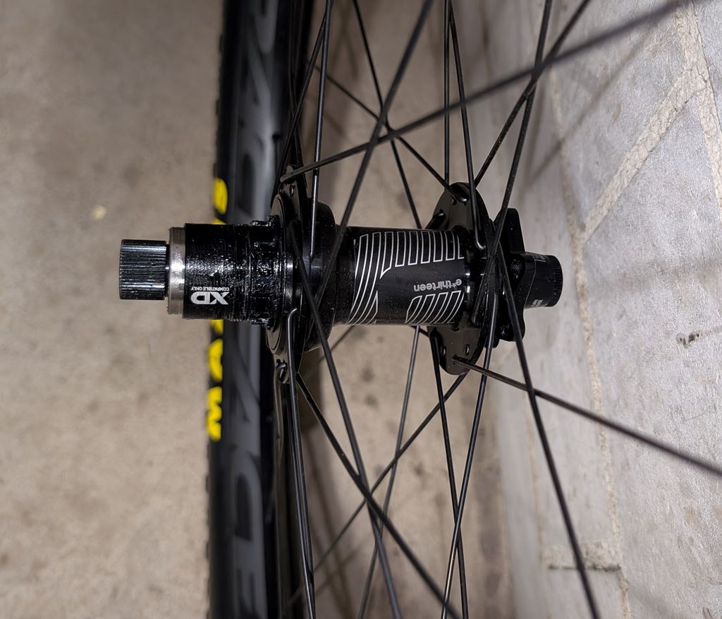 - Mulletlaufradsatz (Vorne 29", hinten 27.5") mit Ethirteen Nabe und RaceFace AR 30 Felge. Inkl. Tubeless montierte Reifen. Die Naben sind Boost, vorne 110x15mm und hinten 148x12mm Einbaubreite. Vorne Assegai, hinten Minion DHR II.