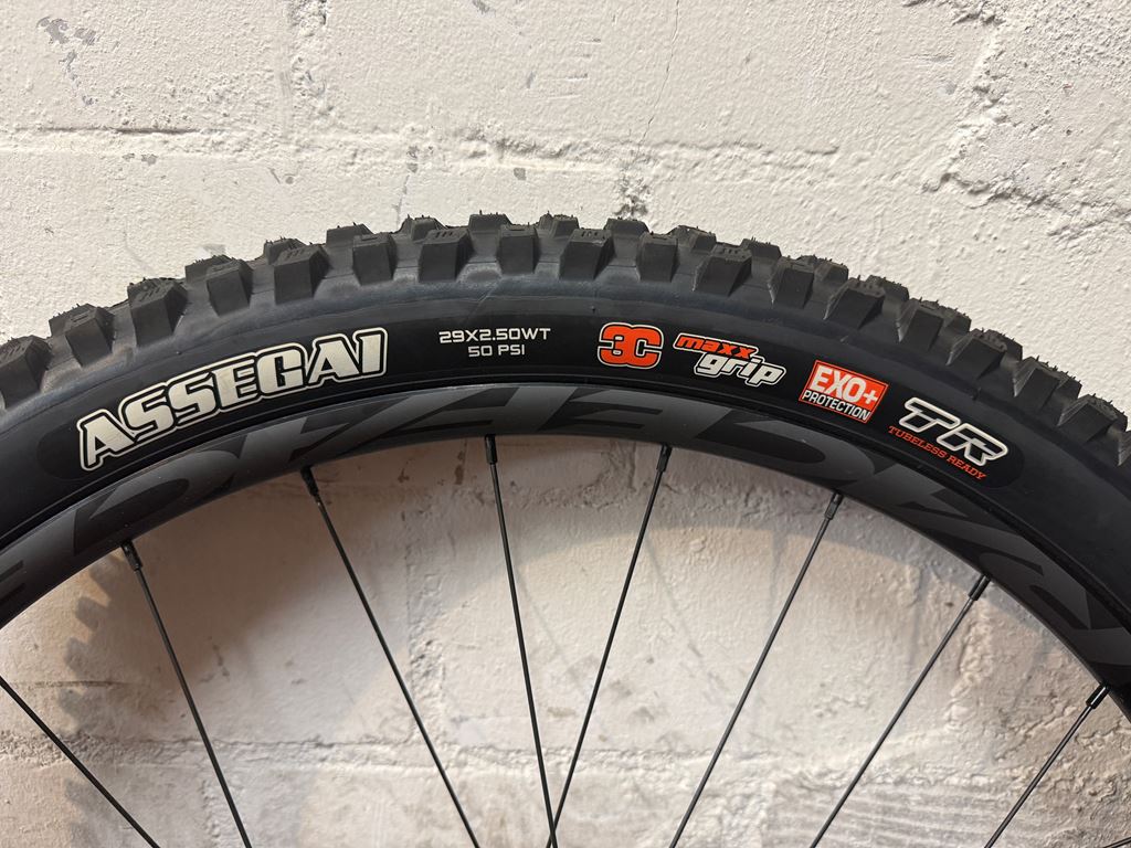 - Neues Vorderrad bestehend aus: Felge RaceFace Arc 30 28 Speichen Nabe E13 Boost 110 mm 6 Loch Speichen schwarz Reifen Maxxis Assegai 3C Maxx Grip Exo+ 29x2.5 WT Schlauch