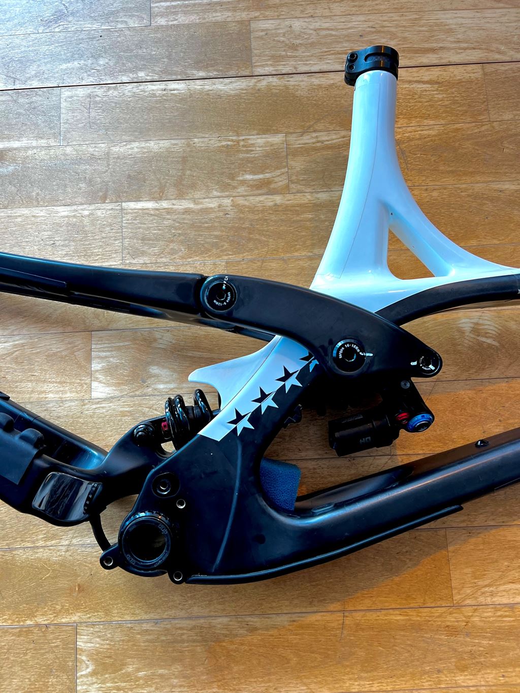 - Verkauft wird ein Ribisu Rocket Psychopath MX 29/27.5 Rahmen in der Grösse L inkl. Dämpfer, Steuersatz, Tretlager und Ersatzteile. Der Rahmen ist von einer kleinen Schweizer Bikemarke aus dem Walis! Das Bike ist sehr verspielt und ist sowohl für schnelle und technische Downhillstrecken als auch für Jumplines super geeignet. Ich bin das Bike nur eine Halbe Saison gefahren, da es mir zu klein ist und der Rahmen befindet sich deshalb noch in einem super Zustand. Es ist ein super leichter Downhill Rahmen, mein aufgebautes Bike hat gerade einmal 15.5Kg gewogen. Der Rahmen ist sehr kurz und entspricht dementsprechend eher einer Rahmengrösse M (siehe Bild 8). Zum Rahmen werden zwei weitere Coil Federn mitgegeben und eine Rahmenfolie, welche auf den Rahmen massgeschneidert wurde ( Rahmen ist bereits an den wichtigsten Stellen foliert). Dämpfer: Fox DHX2 241x76 Tretlager: Sram DUB BSA 73 Steuersatz: Canecreek 40 Series Mehr Infos zum Rahmen findest du unter https://www.ribisu.ch/ Bei Interesse oder Fragen gerne melden!