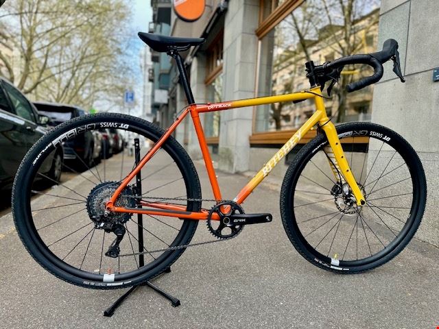 - Wir verkaufen im Namen einer Stammkunden folgendes Top-Gravelbike: Rahmen: Ritchey, Outback (CroMo) Grösse: Medium Farbe: Sunset Gewicht: 9.9kg Neupreis: CHF 4'745.- Km-Leistung: ca. 850 Schaltung: Shimano GRX 810 1x11 Kurbel: Shimano GRX 810, 172.5mm, 40z Kassette: Shimano SLX, 11-fach, 11/46 Lenker: Ritchey WCS Venturemax II, 42cm Vorbau: Ritchey WCS Toyon, 60mm Radsatz: DT Swiss GR 1600, 25mm Reifen: Maxxis Rambler 700x40 Sattel: Fizik Argo