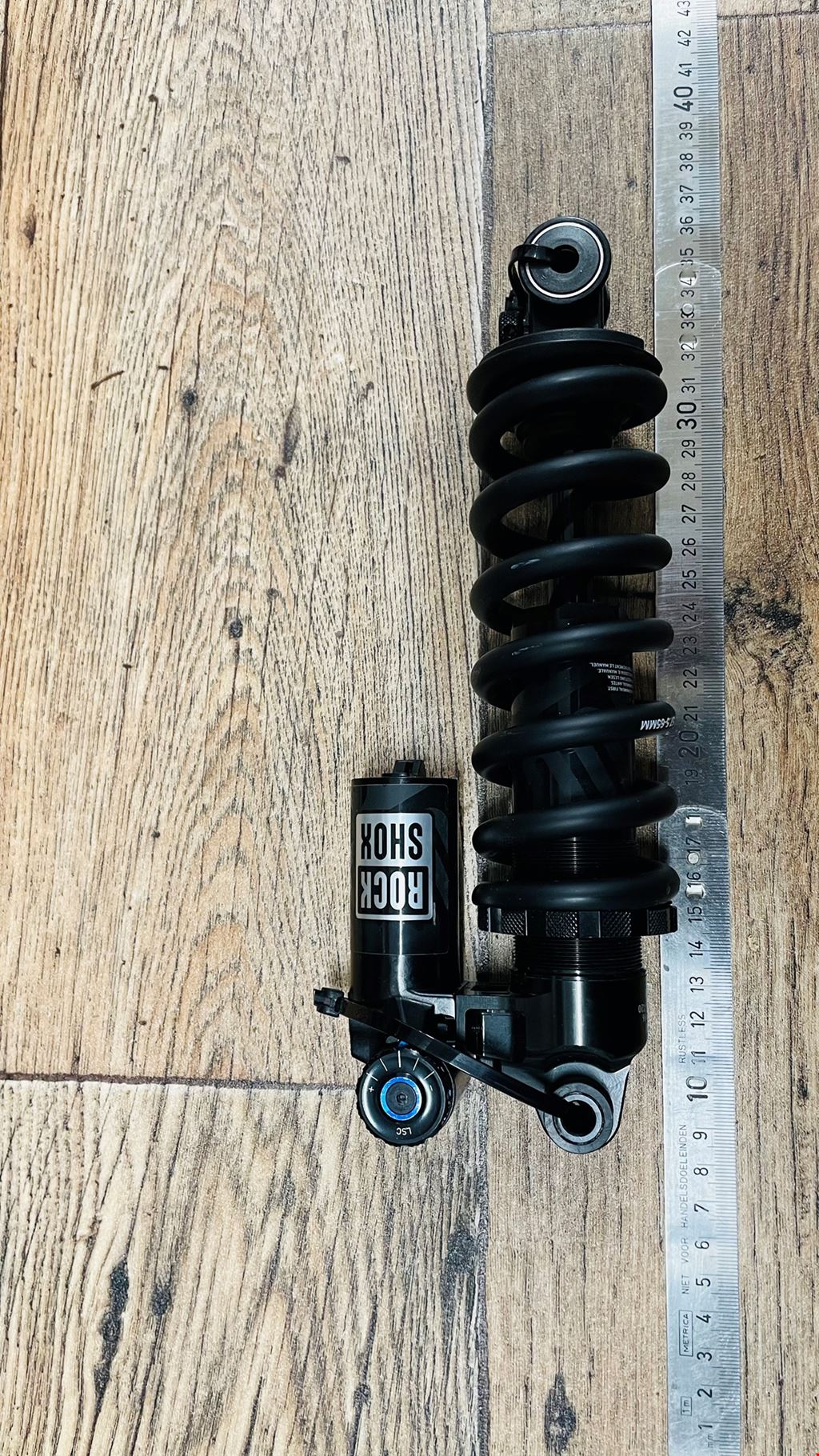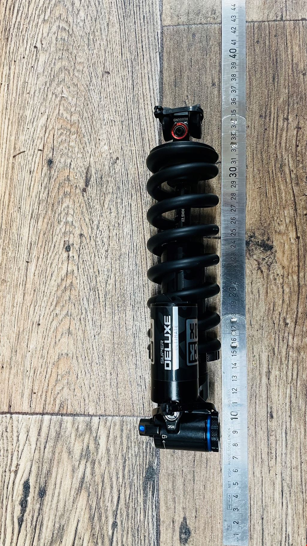 - Dämpfer Rock Shox Super Deluxe Ultimate (230 x 62.5) mit Stahlfeder (nach Wahl entweder 450, 500 oder 550 je nach Verfügbarkeit) Tune für Santa Cruz Megatower V2
