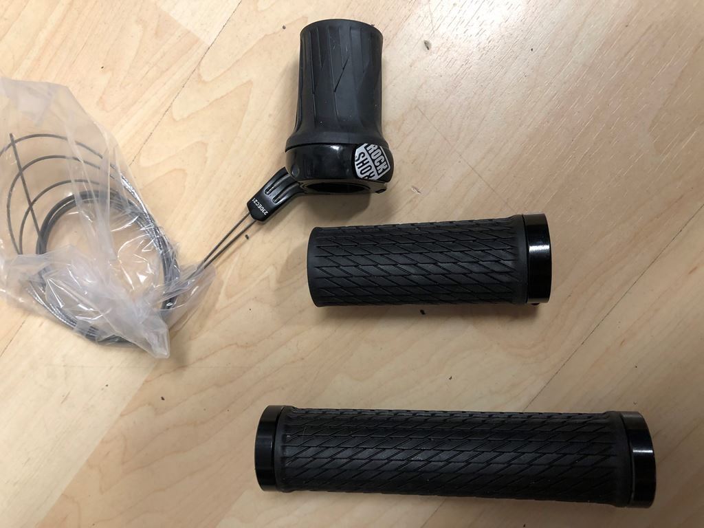 - Rock Shox Remote-Twistloc Left (siehe Fotos). Durch drehen in den Lockout und per Knopfdruck wieder entriegeln. Bei Gabel, Dämpfer oder bei beiden gleichzeitig (Griffe wurden bei einem Neubike demontiert).