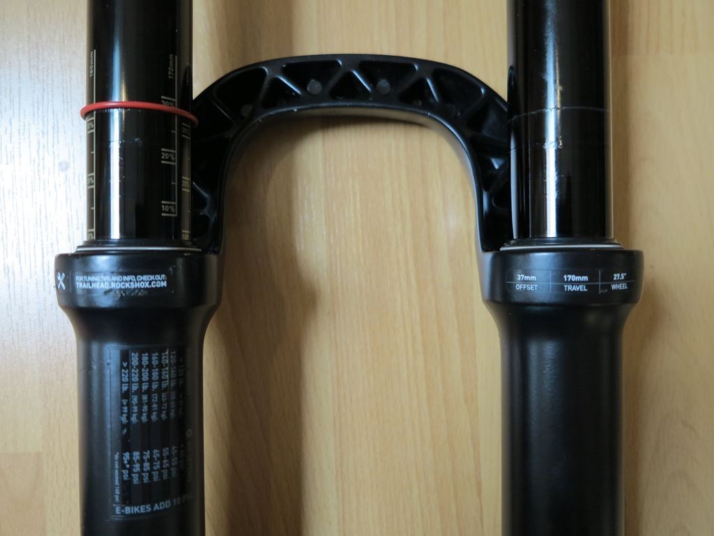 - Diese Gabel war nur für Hersteller erhältlich. Sie hat dasselbe Innenleben wie die Ultimate aber ohne HSC und LSC, aber mit einfacher Druckstufe und ebenfalls mit Charger 2.1 RC2 wie die teurere Ultimate. Sie wurde eine Saison lang gefahren und ist in sehr gutem Zustand, es hat jedoch im linken Standrohr einen Kratzer, sh. Bild. Frisch ab Service. - 27,5" - 170 mm Federweg - Boost (110 mm) - offset 37 mm - Gabelschaft gekürzt auf 197 mm.