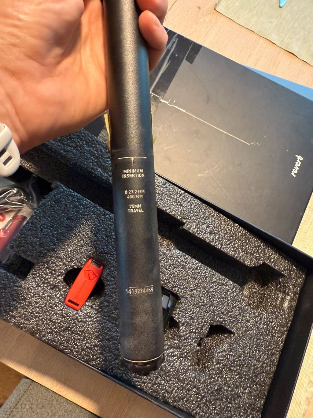 - 27.2mm seat post with electronic wireless raising and lowering. Battery. Barter charger. Controller included. On gravel bikes with 1x, you can set up the buttons so that you press both sides simultaneously to lower or release the seat post. Can be safely shipped.