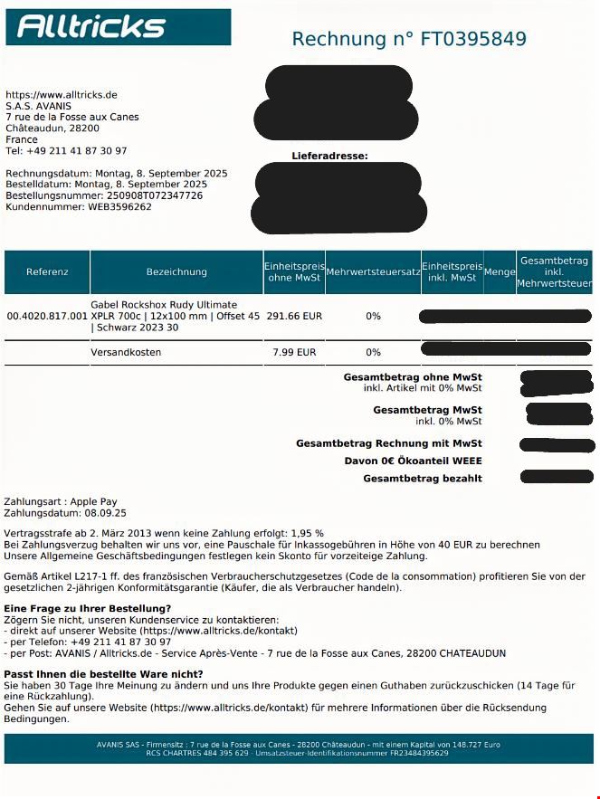 - Wegen nicht Gebrauch, da ich ein neues Bike habe,neue Rockshox Rudy 30mm zu verkaufen. Gekauft bei ALLTRICKS im September 2025.