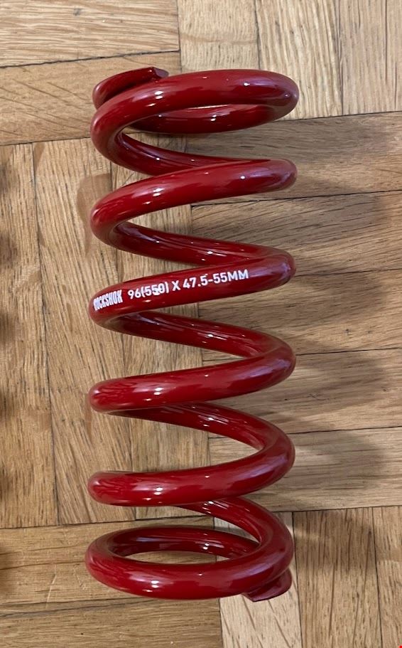 - Neue Rock Shox Stahlfeder für metrische Dämpfer 134 mm für 47.5 - 55 mm Hub. 550 lbs, mit kleinem Lackschaden (ca. 4 mm, siehe Foto) ab Werk. Versand oder Abholung/Übergabe in Langnau am Albis oder Zürich.