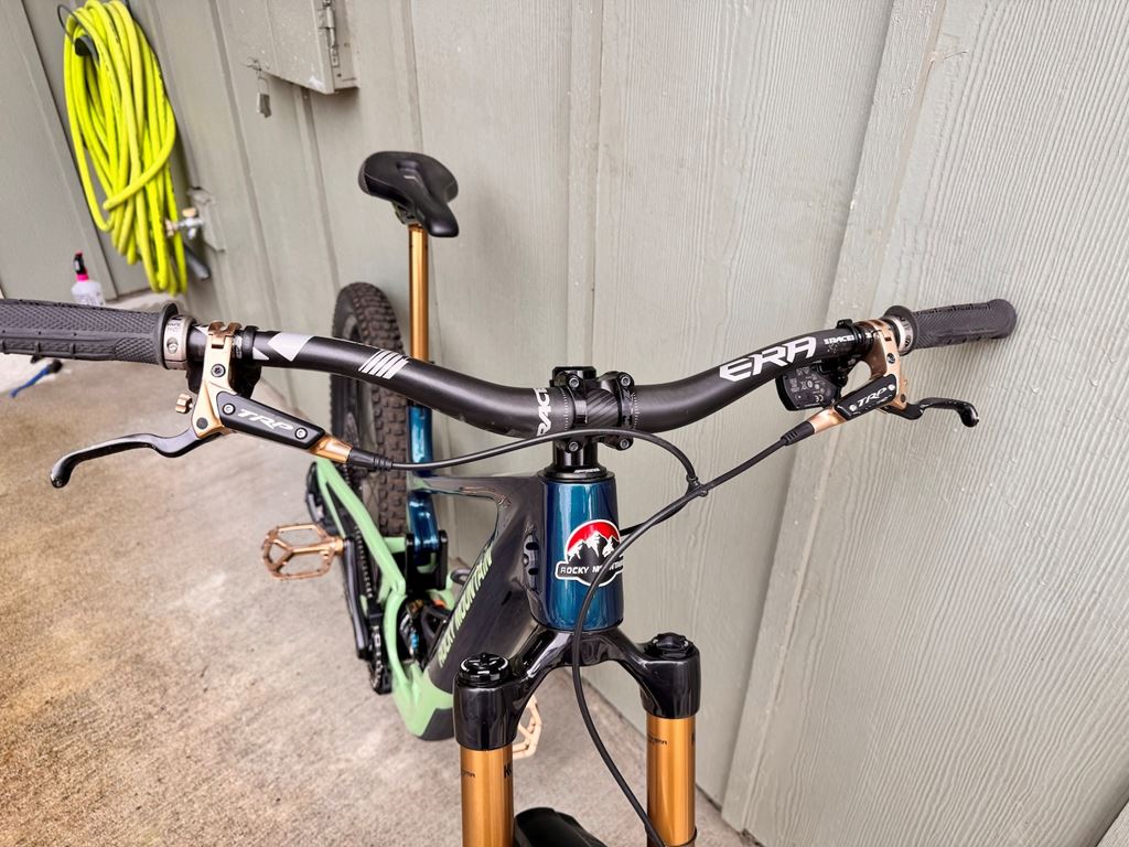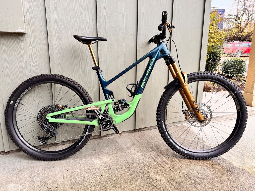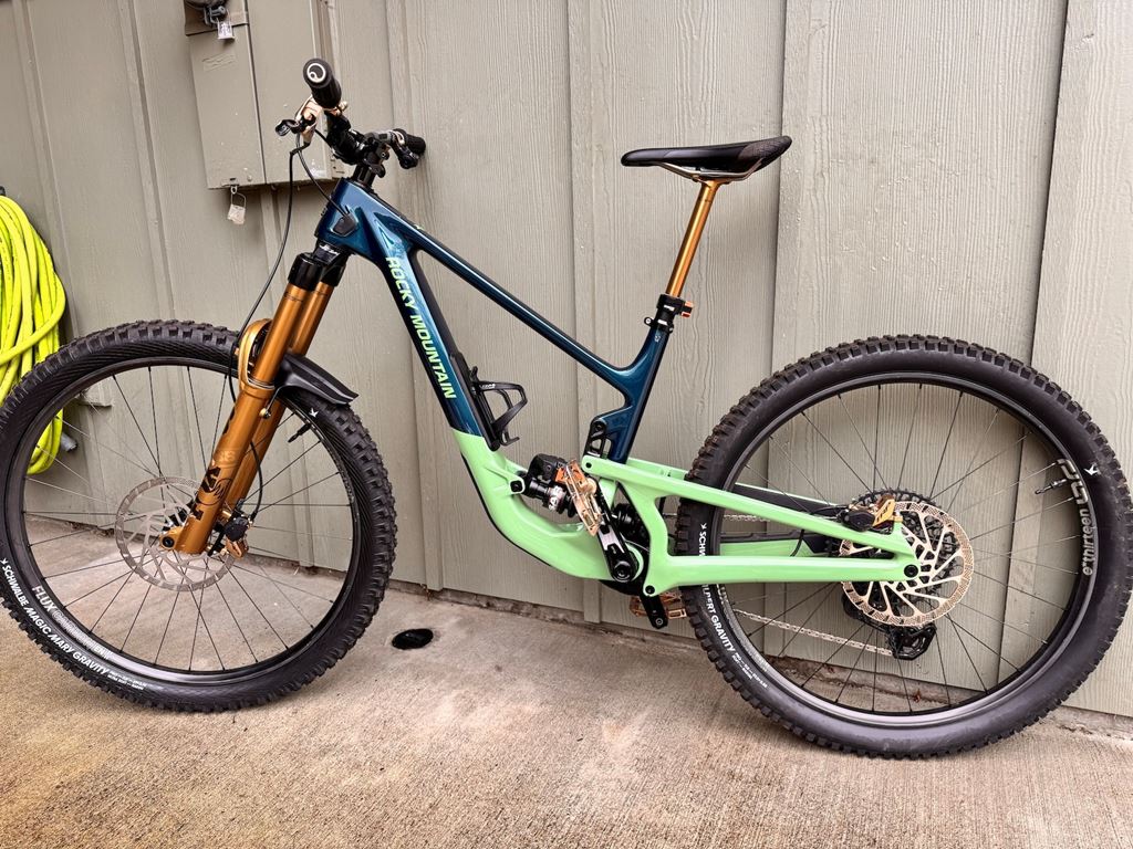 - This bike is in great condition. Bought it last spring and doesn’t have a ton of miles on it. Also never was registered so that’s good for you! It was Ride Wrapped when it was being built so the frame is Immaculate. Theyre are some scuffs on the wrap but the frame is good. Theyre are a couple scuffs on the fork but nothing serious, still works as new. You’ll see all this in the photos. Ok so this bike was a total custom build and it rides like a dream. Especially with the Sidekick Wheelset. Comes with batteries and chargers for SRAM and Fox stuff, also comes with the main pivot tool. Rocky Mountain Altitude Carbon frame size medium(2024) Fox 38 gripx2 Podium gold 170mm Fox Live Valve Neo Coil Rear shock with 450lb SAR spring(I’m 150lbs and this works perfectly) Fox Transfer Neo dropper post 175mm SRAM XO transmission cassette SRAM XX Chain Hope Evo cranks in Black 155mm length Hope Chainring 30t Race Face Atlas pedals Kash Money Cascade components full chainguide Cane Creek Hellbender 70 BB Race Face Era 760mm Handlebar 40mm rise FSA Adjustable headset(currently at 0) Ergon GSA Team grips TRP DH EVO brakes in gold TRP SO5E Race rotors(220 front,, 203 rear) MTX Red label pads rear MTX Gold label pads front E-Thirteen Grappler Flux Sidekick MX Wheelset Schwalbe Magic Mary Gravity Radial ultrasoft front tire Schwalbe Albert Gravity Radial soft rear tire