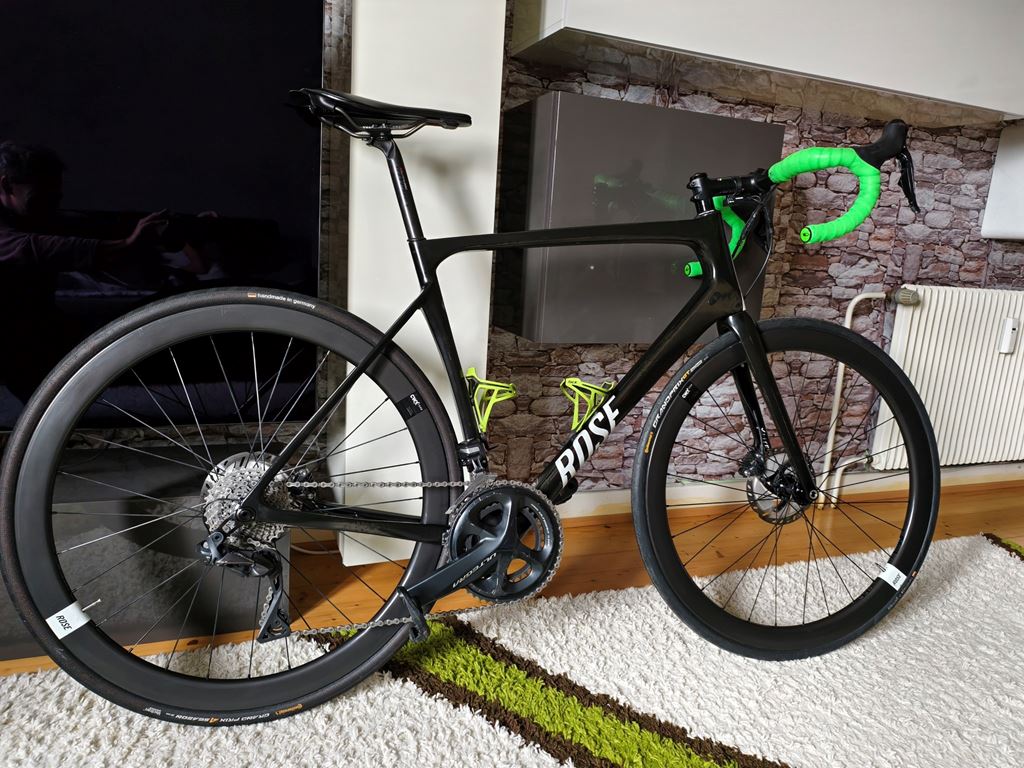 - Ich stelle hier meine ultimative Rennmaschine von Rose, 2020 war der Neupreis 5799 EU. Ich möchte zukünftig nur noch Mountainbike fahren, das ist der Grund für den Verkauf, ich hoffe das Bike kann jemanden anderen viel Spass bereiten. Egal ob flache Passagen oder Bergetappen das Bike bringt immer die volle Performance aufs Asphalt, wurde in vielen Test ausgezeichnet, das kann ich nur bestätigen. Das Bike wurde steets professionell gewartet und sehr gepflegt es gibt nichts auszusetzen,keine Stürze. Das Ladegerät, und ein paar Zubehörteile gibts gratis dazu. Allgemeine & technische Daten zum Rennrad: Gesamtgewicht: 7,3kg Rahmengrösse: 54 cm ( Empfehlung zwischen 174 cm und 182 cm je nach Körperbau. Ich bin 180 cm gross für mich war es perfekt!) Rahmen:T40/60 UHM/HT Carbon, ab ca. 790 g UD-Carbon Laufräder: Rose CWX 1550 44 mm Carbon Laufradsatz Reifen: Continental Grand Prix 4Season 28 mm, neuwertig Lenker: Ritchey Comp Road Streem Carbon Vorbau: Ritchey Sattel: Fizik Versus Evo Sattelstütze: Ritchey Superlogic Link 15 Flexlogic, Carbon UD carbon Schaltung: Ultegra Di2 RD R8050 SS Kurbel + Kasette: Kompaktkurbel 50/34, Ultegra CS 8000 Kassette 11 / 32 Umwerfer: Shimano Ultegra Di2 Bremsen: Shimano Ultegra 160 mm