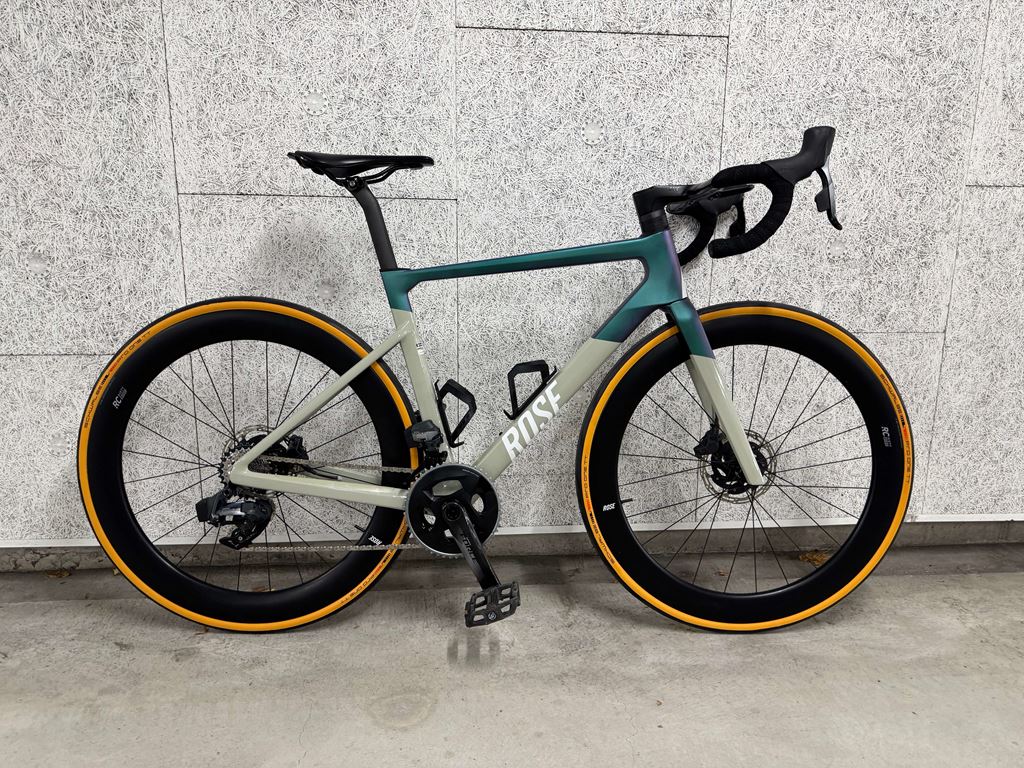 - Rose XLITE 06 DISC 2022, Force eTap AXS D1, 55cm Verkaufe mein gebrauchtes aber gut in Stand gehaltenes Rose XLITE 06 in Grösse 55cm (Jahrgang 2022) mit elektrischer Schaltung. Verkaufsgrund: Habe zu viele Fahrräder Neupreis: CHF 6298.95 Probefahrt: bei guter Witterung möglich Versand: Muss abgeholt werden ZUSTAND Rahmen: Gebraucht, weist Kratzer und Gebrauchspuren auf. Rund um das Tretlager ist der Lack beschädigt da mir die Kette in einem Anstieg rausgefallen ist während ich getreten habe. Hat keine funktionelle Einschränkung. Antrieb: Neuwertig (2 Ausfahrten). Habe Kassette, Kurbel und Kette auf meine Bedürfnisse umgerüstet. Für den Verkauf die Basisausstattung wieder montiert. Schaltwerk: Gebraucht, weist Kratzer auf weil ich bei Schritttempo auf Kies in der Kurve ausgerutscht bin, uneingeschränkt funktionstüchtig. Tretlager: Neu, Wurde für den Verkauf ersetzt. Steuersatz: Unteres Lager wurde ersetzt, oberes Lager in gutem Zustand Laufräder: Gebraucht, weisen Kratzer und Gebrauchspuren auf, uneingeschränkt funktionstüchtig. Felgenbremsen: Gebraucht, uneingeschränkt funktionstüchtig Bremsbelege: Neuwertig (2 Ausfahrten) Reifen & Schläuche: Neu, für den Verkauf ersetzt Lenkerband: Neu, wurde für den Verkauf ersetzt Sattel: Gebraucht, uneingeschränkt funktionstüchtig ZUBEHÖR - GoPro Mount für Computerhalterung - SRAM PowerLock D1 für die Kette - Tubless-Ventile - Ersatz-Schaltauge - Ersatzschlauch - Originalrechnung KONFIGURATION Rahmen: Rose XLITE 06 DISC, borealis green / chalk, 55cm Gabel: Rose XLITE 06 DISC, Carbon Lenker-Vorbau-Kombination: One Piece Cockpit Race, 100mm/42cm Computerhalterung: ROSE Garmin-Mount Race One-Piece Cockpit Vorbauhalterung Laufräder: ROSE RC60, carbon 24 Loch Reifen: Schwalbe Pro One TT, TLE, classic. 700x28C Schläuche: Pirelli Road Tube P Zero Lite, Presta Valve, 80mm, black, 700x23-30C Tretlager: SRAM DUB Pressfit 86 Kurbel: SRAM FORCE AXS Powermeter, 48/35 D1 DUB, schwarz 172.5mm Kassette: SRAM XG 1270 D1, silber 10-28 Umwerfer: SRAM Force AXS D1, schwarz Schaltwerk: SRAM Force AXS D1, schwarz Kette: SRAM Force, 12-fach Schaltbremshebel: SRAM Force AXS D1, schwarz Felgenbremsen: SRAM CenterLine XR, 160mm Lenkerband: Fizik Tempo Microtex Bondcush Soft Sattel: Antares Versus Evo R5, 139mm Sattelstütze: Rose d-shape, 14mm Offset Flaschenhalter: BBB FastCage, BBC-41