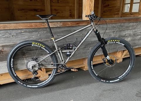 - Ruchti Bicycle ET Reloaded ist eine Hommage an das ET aus dem Jahre 1999. Ein modernes Stahlbike Fully mit allen modernen Featurs in eine klassischer Optik verpackt. Rahmen kann roh gekauft und nach eigenen Vorstellungen gestaltet werden. Rahmen roh inkl. Schaltauge (UDH), Steckache und Dämpferbolzen, Hinterbaulager Fr. 1499.-. Lenkwinkel 66° Sitzwinkel 76° Sitzrohr 450mm Oberrohr effektiv 625mm Reach 469mm Stack 625mm Federweg 120mm Gabel 130-140mm Tretlager BSA 68mm Dämpfer Metrisch 210mm Bremse PM180 Schaltauge UDH (Transmission kompatibel) Sattelstütze 30.9mm, Steuerlager oben und unten 44mm Durchmesser. Ausstattungsvarianten ab Fr. 4900.-