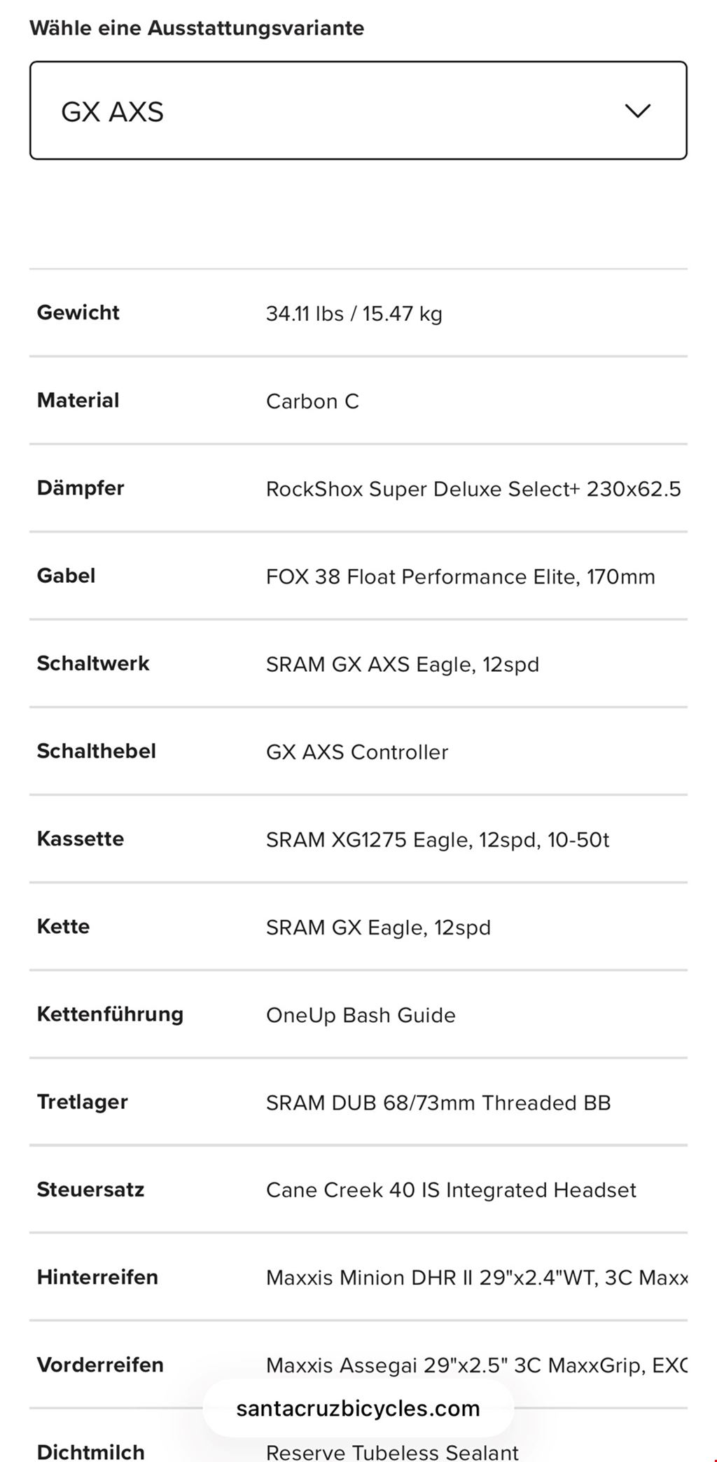 | Rahmen | SANTACRUZ | Megatower GX AXS |