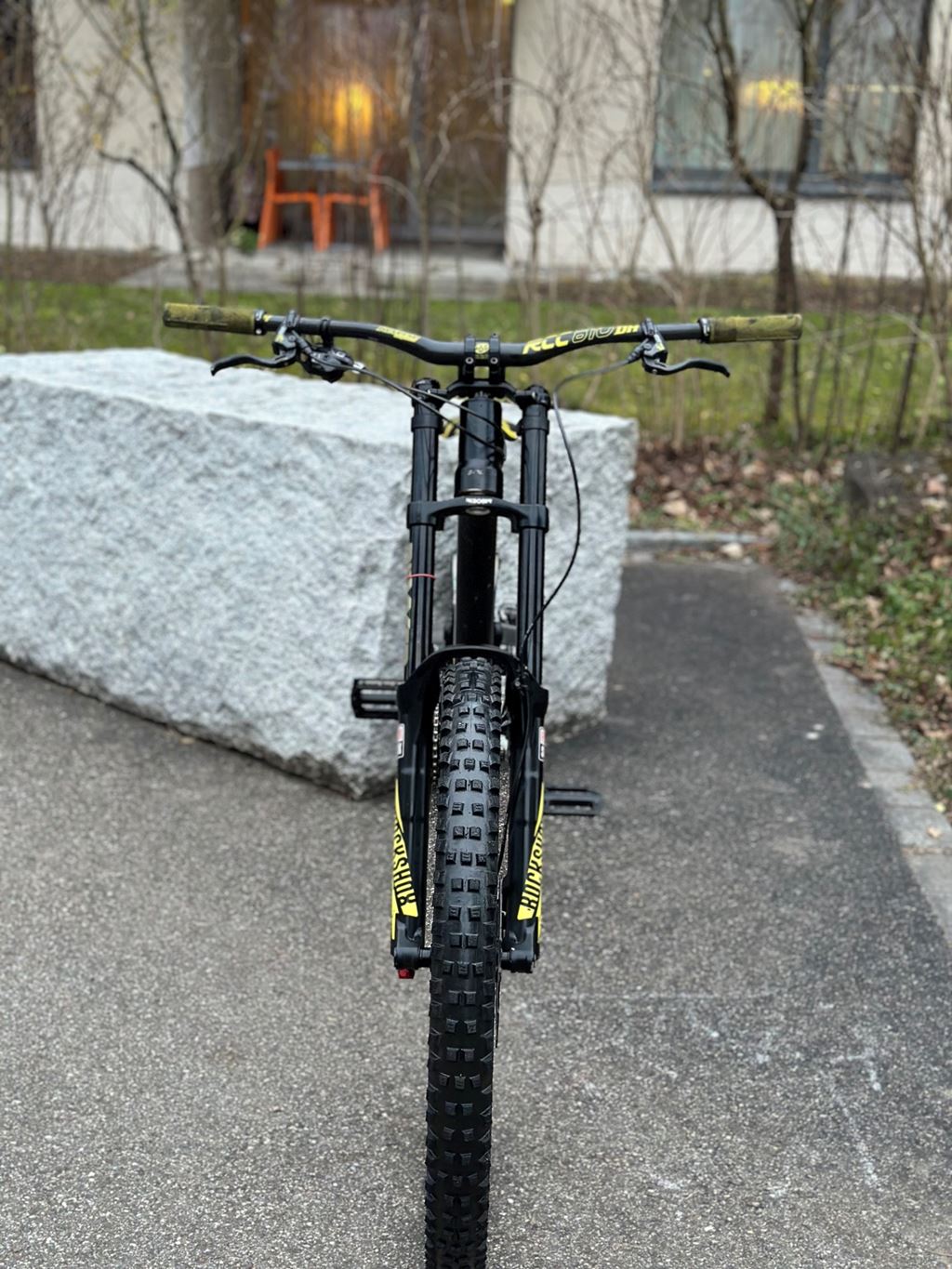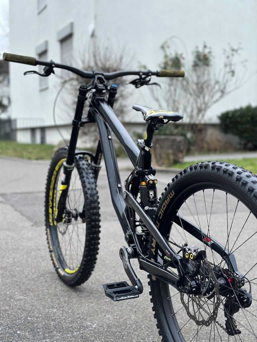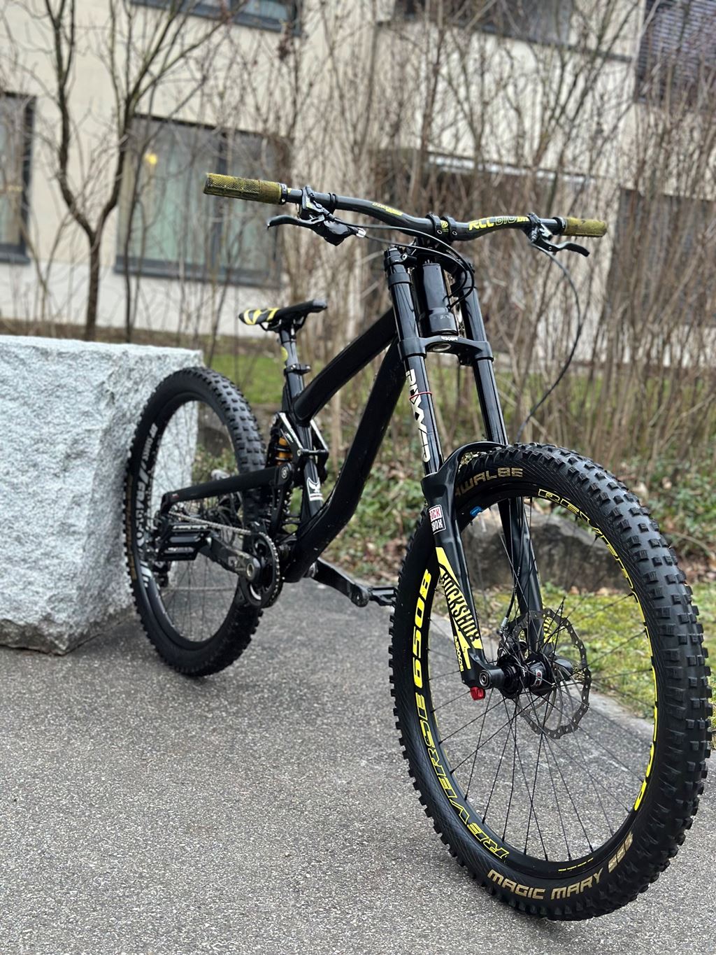 - Hallo zusammen Verkaufe mein Solid Blackstrike Downhill Bike (2019) in Grösse M/L (ca. 170–185 cm). Verkauf wegen Umzug. Zustand Das Bike ist in sehr gutem Zustand und wurde gepflegt. Lager frisch gefettet, Bremsen entlüftet, alles funktioniert einwandfrei. Räder laufen gerade, keine Achter, keine Dellen oder Risse. Nichts knackt, nichts hat Spiel – einfach draufsetzen und fahren. Am Bike sind sehr viele hochwertige Teile von Reverse Components verbaut (Vorbau, Vorderrad und weitere Details). Stabil, hochwertig, sauber aufgebaut – kein Billigzeug. Zusätzlich sind Carbonteile verbaut: Carbon Lenker, Carbon Kurbeln und Carbon Sattelstütze. Antrieb / Schaltung Top SRAM X0 Downhill 7-fach Antrieb mit dem besten X0 Schaltwerk. Dazu eine Reverse Kassette, perfekt für Downhill. Gabel RockShox Boxxer Air (3 Einstellungen: Luftdruck, Low Speed Rebound, Low Speed Compression) Dämpfer Cane Creek Double Barrel (5 Einstellungen: Feder-Preload, High Speed Compression, Low Speed Compression, High Speed Rebound, Low Speed Rebound) Bremsen Magura MT7 mit 203 mm Magura Scheiben vorne und hinten. Sehr guter Zustand, gute Beläge, volle Bremsleistung. Kurbeln SRAM X0 Carbon Kurbeln, Downhill-Version. Extrem stabil und leicht. 27.5 Rädern: Reverse Vorderrad Dt Swiss FR 1950 Hinterrad (Eines der besten von DT Swiss.) Insgesamt ein ehrlich aufgebautes, starkes Downhill-Bike mit hochwertiger Ausstattung. Kein Bastelprojekt, kein Schönreden – das Bike funktioniert und ist ready für den Einsatz. Verkauf ist dringend, wer zuerst kommt, bekommt das Bike. Bei Fragen einfach melden.