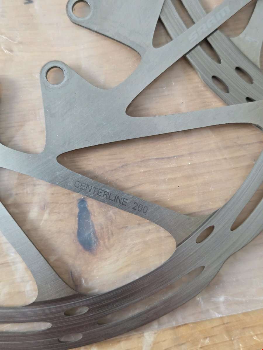 - SRAM Code R hydraulische 4-Kolben Bremse inklusive SRAM Centerline Bremsscheiben zu verkaufen. Die Leitung der Hinterradbremse wurde durchtrennt da sie im Rahmen verlegt war, und beträgt noch ca. 157cm. Es sind ein neuer Pin und eine neue Olive zur Installation dabei. Die Bremshebel werden inklusive Schellen zur Befestigung verkauft. Die 200mm Centerline 6-Loch Bremsscheiben haben noch ca. 1.7mm und 1.6mm Dicke (Verschleißgrenze liegt bei 1.55mm). Die Bremsbeläge haben geschätzt hinten noch 70% und vorne 30% Reststärke. Die Bremsen sind gebraucht mit Gebrauchsspuren (siehe Fotos) und haben bis zum Ausbau einwandfrei funktioniert. Ideal für Enduro & Trail, sie waren an einem YT Capra Core 3 in Größe Large montiert.