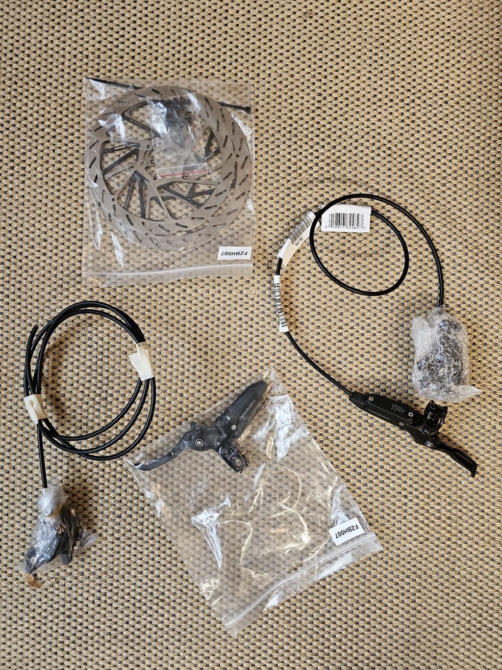 - Die Bremse wurde von einem neuen Bike abmontiert. Kompletter Satz (siehe Fotos).
