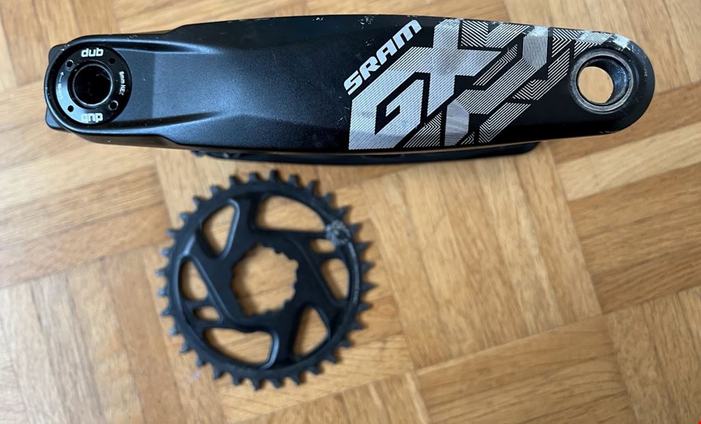- Gut gebrauchte SRAM GX Eagle Kurbel. Kurbellänge 175 mm, Boost, für Dub-Innenlager. Einige Macken, aber funktioniell alles in Ordnung. Dazu gibt's ein gebrauchtes SRAM X-Sync 2 Kettenblatt mit 32 Zähnen. Versand oder Abholung/Übergabe in Langnau am Albis oder Zürich.