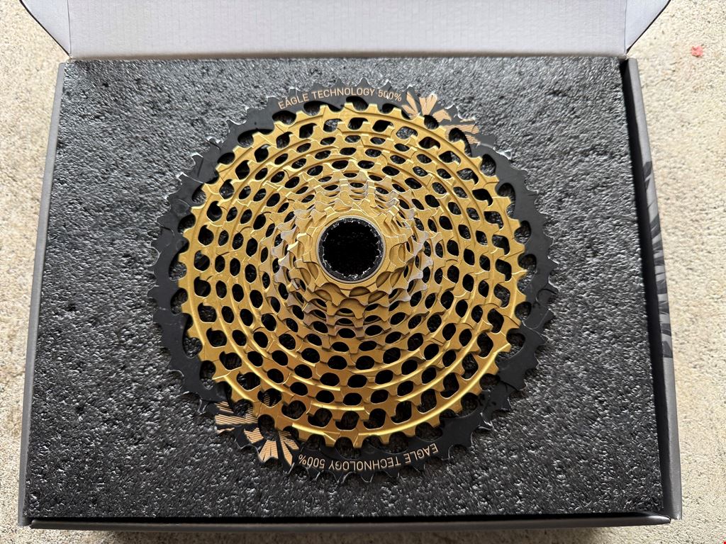 - Verkaufe meine gebrauchte SRAM XX1 Eagle Kassette - Farbe: Gold - Zustand: Gebraucht, leichte Gebrauchsspuren aber voll funktionsfähig. Keine Beschädigungen. - Zähne: 10-52T Auch als Kompletter XX1-Antrieb erhältlich