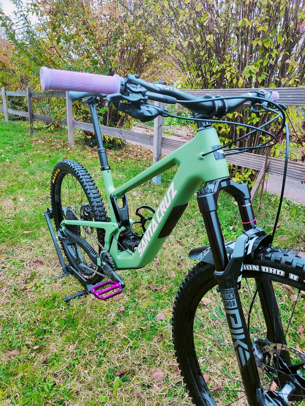 - Zu verkaufen: Santa Cruz 5010 S-Kit, Größe L, in gutem Zustand. Der Rahmen wurde vor der ersten Ausfahrt mit einem vollständigen Schutzkit von Slicy versehen und ist daher sehr gut erhalten. Das Bike ist technisch in einwandfreiem Zustand. Es sind lediglich ein paar Gebrauchsspuren an den Laufrädern sichtbar, die durch normale Nutzung entstanden sind. Laut Santa Cruz eignet sich Größe L für Fahrer*innen zwischen 175 und 185 cm. Ausstattung: Federgabel: RockShox Pike Select+ 140 mm (Low- und High-Speed-Compression einstellbar) Dämpfer: RockShox Super Deluxe Select+ 130 mm Laufräder: Race Face AR30 Antrieb: SRAM GX Lunar, 12-Gang Bremsen: Shimano XT, 4-Kolben Lenker: Burgtec 760 mm Vorbau: Burgtec 42,5 mm Griffe: Burgtec Josh Bryceland Edition Sattelstütze: OneUp 180 mm Sattel: Original WTB Reifen: Maxxis Minion DHF 2.4 Exo 3C & Schwalbe Eddy Current Rear 2.5 Wird ohne Pedale und ohne Flaschenhalter verkauft. Versand ist möglich, die Kosten trägt der Käufer.