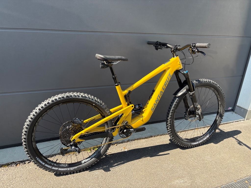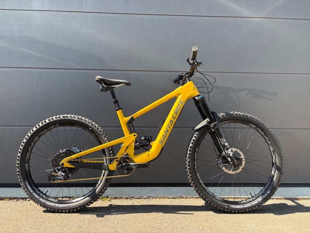 - Light Enduro E-MTB - neuwertig /Top Zustand - 38% günstiger Wenig benutzt (350 Km) - ready to ride Mullet 27.5/29 " - Stout = mit Enduro Ausstattung: Fox 38 Elite, Fox X2 und Sram Maven Bremse Neupreis 8999 CHF (plus 99 CHF XX1 Kette) Grösse L: 172 - 185 cm Körpergrösse Gewicht: 20.6 kg Federweg vorne: 160 mm Federweg hinten: 150 mm Motor: Fazua Ride 60, 430 Wh Batterie Rahmen: Santa Cruz Heckler SL, C Carbon, 12 x 148 mm (Boost) Gabel: Fox Racing Shox 38 Float Elite, Grip X2, 44 mm Vorlauf, 12 x 110 mm (Boost) Vorbau: Burgtec Enduro MK3 Lenker: Santa Cruz e35 Carbon Griffe: Santa Cruz House Grips Dämpfer: Fox Racing Shox X2 Performance Elite, 210 x 55 mm Steuersatz: Cane Creek 50 IS Integrated Headset, IS41 - IS52 Sattelstütze: OneUp Components V2 Dropper Post, 31,6 mm, 180 mm Sattel: Ergon Sport Kurbel: Praxis Works eTor, 32 Z Pedale: ohne Bremsen: SRAM Maven Bronze Stealth, SRAM Centerline Bremsscheiben, 200 mm / 200 mm Schalthebel: SRAM GX Eagle Single Click, 12-fach Schaltwerk: SRAM GX Eagle, 12-fach Kassette: SRAM XG 1275 Eagle, 12-fach, 10 - 50 Z Kette: SRAM XX1 Eagle, 12-fach, gold Felgen: Raceface ARC 30 HD, Aluminium, 29" (vorne) / 27,5" (hinten) Vorderradnabe: e*thirteen SL, Disc 6-Loch, 12 x 110 mm (Boost), 32 Loch Hinterradnabe: e*thirteen SL E-Spec, Disc 6-Loch, 12 x 148 mm (Boost), SRAM XD, 32 Loch Reifen Vorderrad: Schwalbe Magic Mary, Trail Radial Ultra Soft, 29 x 2,5" Reifen Hinterrad: Schwalbe Magic Mary, Gravity Radial Soft 27,5 x 2,5"