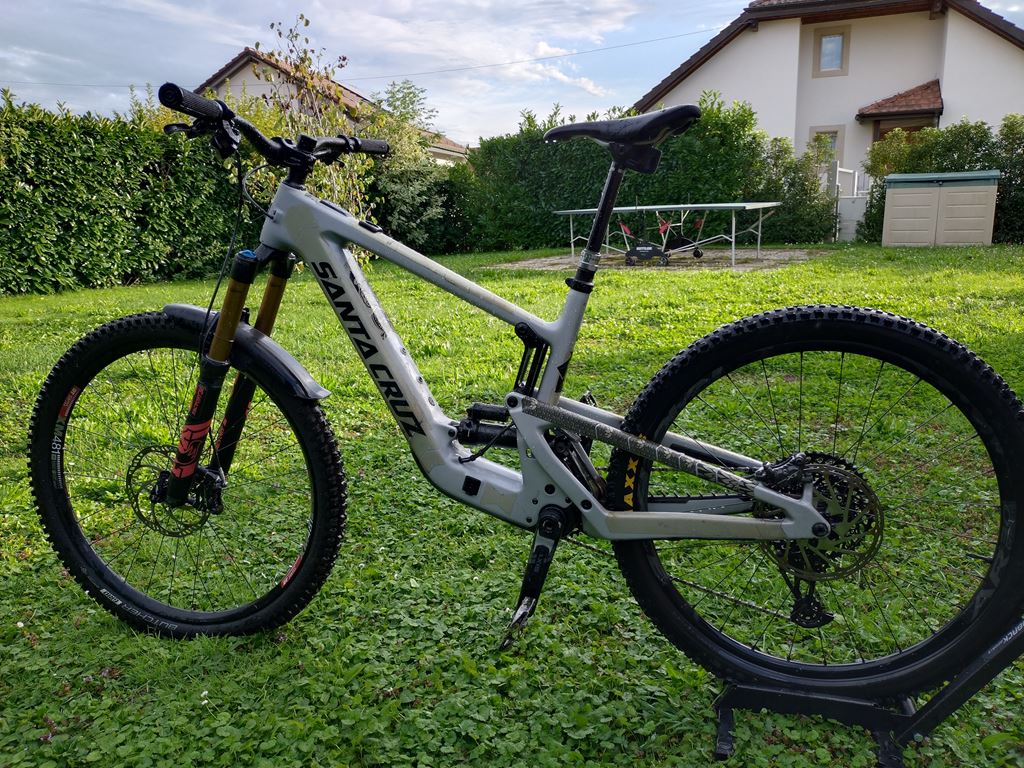 - Santa Cruz Heckler SL Carbone (MX 29/27.5) gris de 2024, taille L, moteur Fazua Ride 60 (60 Nm), batterie 430 Watts Fourche Fox 36 float Factory Fit4 160 mm, amortisseur Rock Shox Super Delux Select+, freins Shimano XT 4 pistons avec disques 203 mm, tige selle Rock Shox Reverb AXS (sans câble) 150 mm, transmission Sram GX Eagle AXS (sans câble) 12 speed. Env. 3'400 km selon application Fazua, jamais eu de problèmes moteur/batterie, dernière mise à jour software effectuée, état batterie selon application 99%, en bon état général (marques d'usures normales), prix CHF 3'990.00 (garantie -> 21.12.2025) A titre indicatif, autonomie pour rider +80 kg : env. 1'400 m D+ en mode éco