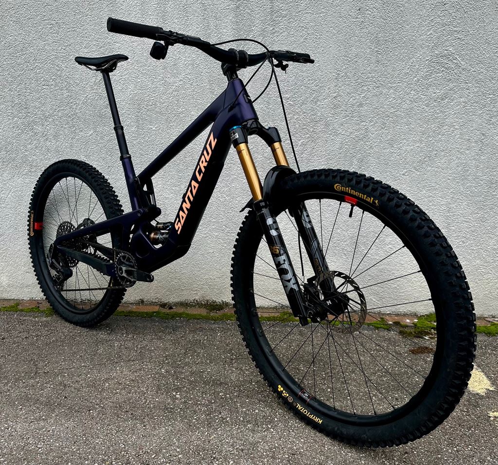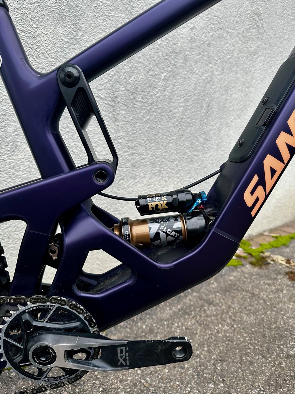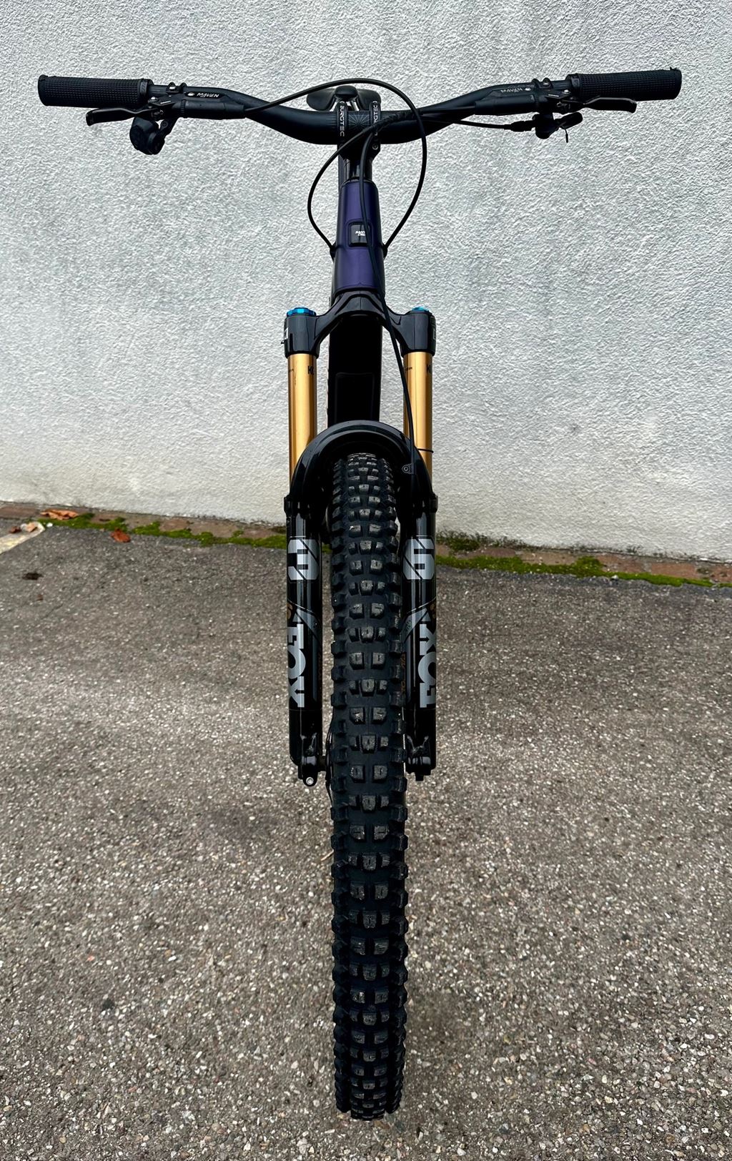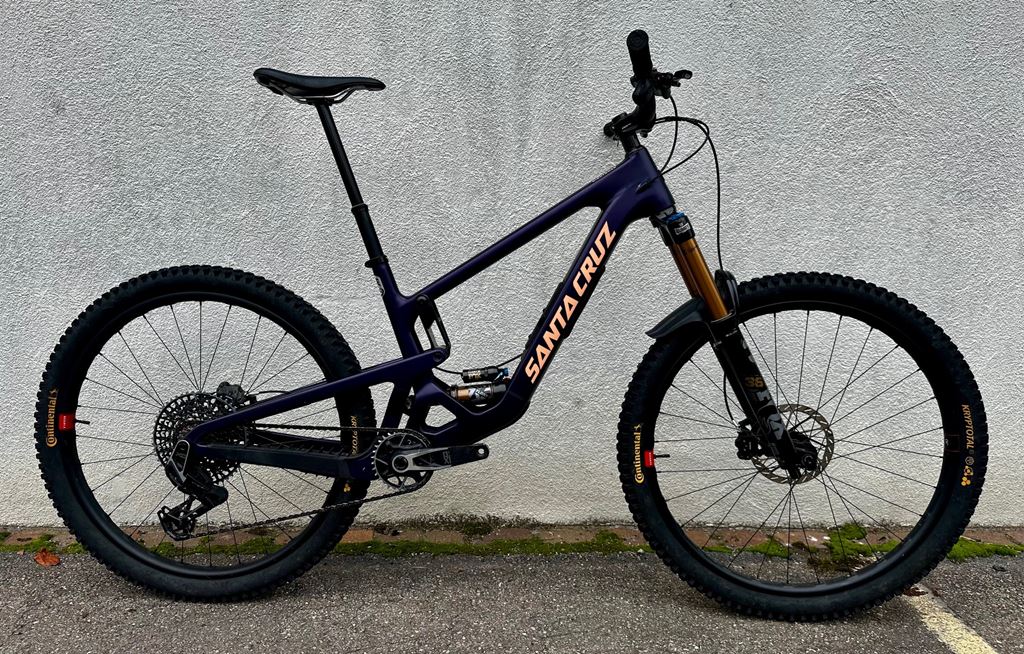 - Carbon CC Rahmen Fox 36 Float Factory Federgabel FOX Float X Factory Dämpfer SRAM X0 Eagle AXS Transmission Antrieb Reserve 30|HD Carbon Laufräder Farbe: Matte Deep Purple | Größe:L (5'9" - 6'1" / 175 - 185cm) Das Velo ist im TOP-Zustand - Es wurde nur wenig bewegt, dennoch komplett frisch geserviced und Rahmen als auch Gabel waren von Beginn an komplett abgeklebt (RideWrap). Gesamtspezifikationen: Gabel - Fox 36 Float Factory, Grip X2, 160mm Dämpfer - FOX Float X Factory, 230x57.5 Tretlager - SRAM DUB 73mm MTB Wide BB Kassette - SRAM X0 Eagle T-Type, 10-52t Kette - SRAM X0 Eagle T-Type, Flattop, 12spd Kurbel - SRAM X0 Eagle DUB T-Type Crankset, 32t Schaltwerk - SRAM X0 Eagle AXS T-Type, 12spd Schalthebel - SRAM AXS Pod Controller Rocker Paddle Bremsen - SRAM Maven Silver Stealth Griffe - Santa Cruz Bicycles House Grips Lenker - Santa Cruz 35 Carbon Bar, 760mm Steuersatz - Cane Creek 40 IS Integrated Headset Sattel - WTB Silverado Medium Fusion, CroMo SL Sattelstütze - OneUp Dropper Post, 31.6, 210 mm Vorbau - Burgtec Enduro Stem, 42mm Felge vorne - Reserve 30|HD Carbon Nabe vorne - Industry Nine 1/1, 15x110, 6-Bolt, 28h Vorderreifen - Continental Kryptotal DH, SuperGrip Felge hinten - Reserve 30|HD Carbon Nabe hinten - Industry Nine 1/1, 12x148, XD, 6-Bolt, 28h Hinterreifen - Continental Kryptotal DH, SuperGrip Ventile - Reserve Fillmore Valves