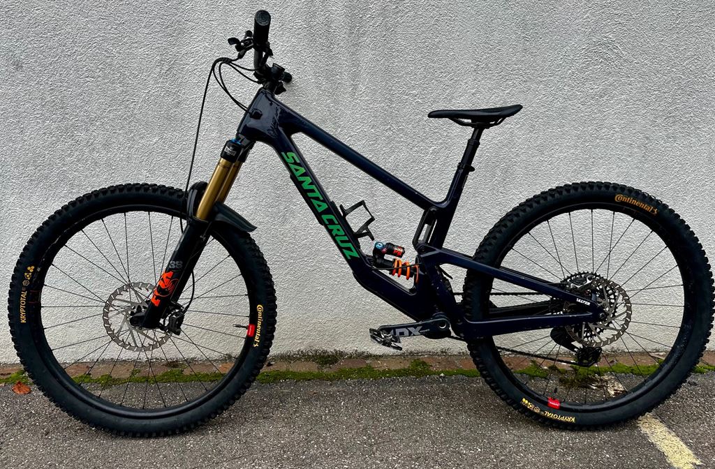 - Carbon CC Rahmen Fox 38 Float Factory 170mm Federgabel FOX Float DHX2 Factory Dämpfer SRAM X0 Eagle AXS Transmission Antrieb !!! Reserve 30|HD Carbon Laufräder Farbe: Translucent Blue | Größe: XL Das Velo ist im TOP-Zustand - Es wurde komplett frisch geserviced, alle Verschleissteile ersetzt und Rahmen als auch Gabel waren von Beginn an komplett abgeklebt (RideWrap). SRAM X0 Eagle AXS Transmission kürzlich erst nachgerüstet - Max. 5x gefahren... Gesamtspezifikationen: Gabel - Fox 38 Float Factory, 170mm Dämpfer - FOX Float DHX2 Factory 230x62.5 Tretlager - SRAM DUB 73mm MTB Wide BB Kassette - SRAM X0 Eagle T-Type, 10-52t Kette - SRAM X0 Eagle T-Type, Flattop, 12spd Kurbel - SRAM X1 Carbon Eagle 148 DUB, 32t Schaltwerk - SRAM X01 Eagle AXS T-Type, 12spd Schalthebel - SRAM AXS Pod Controller Rocker Paddle Bremsen - SHIMANO XTR Griffe - DEITY Lenker - Santa Cruz 35 Carbon Bar, 780 mm Steuersatz - Cane Creek 40 IS Integrated Headset Sattel - WTB Silverado Medium Fusion, CroMo SL Sattelstütze - OneUp Dropper Post, 31.6, 210 mm Vorbau - BIKE YOKE Barkeeper, 45mm Felge vorne - Reserve 30|HD Carbon Nabe vorne - Industry Nine 1/1, 15x110, 6-Bolt, 28h Vorderreifen - Continental Kryptotal DH, SuperGrip Felge hinten - Reserve 30|HD Carbon Nabe hinten - Industry Nine 1/1, 12x148, XD, 6-Bolt, 28h Hinterreifen - Continental Kryptotal DH, SuperGrip