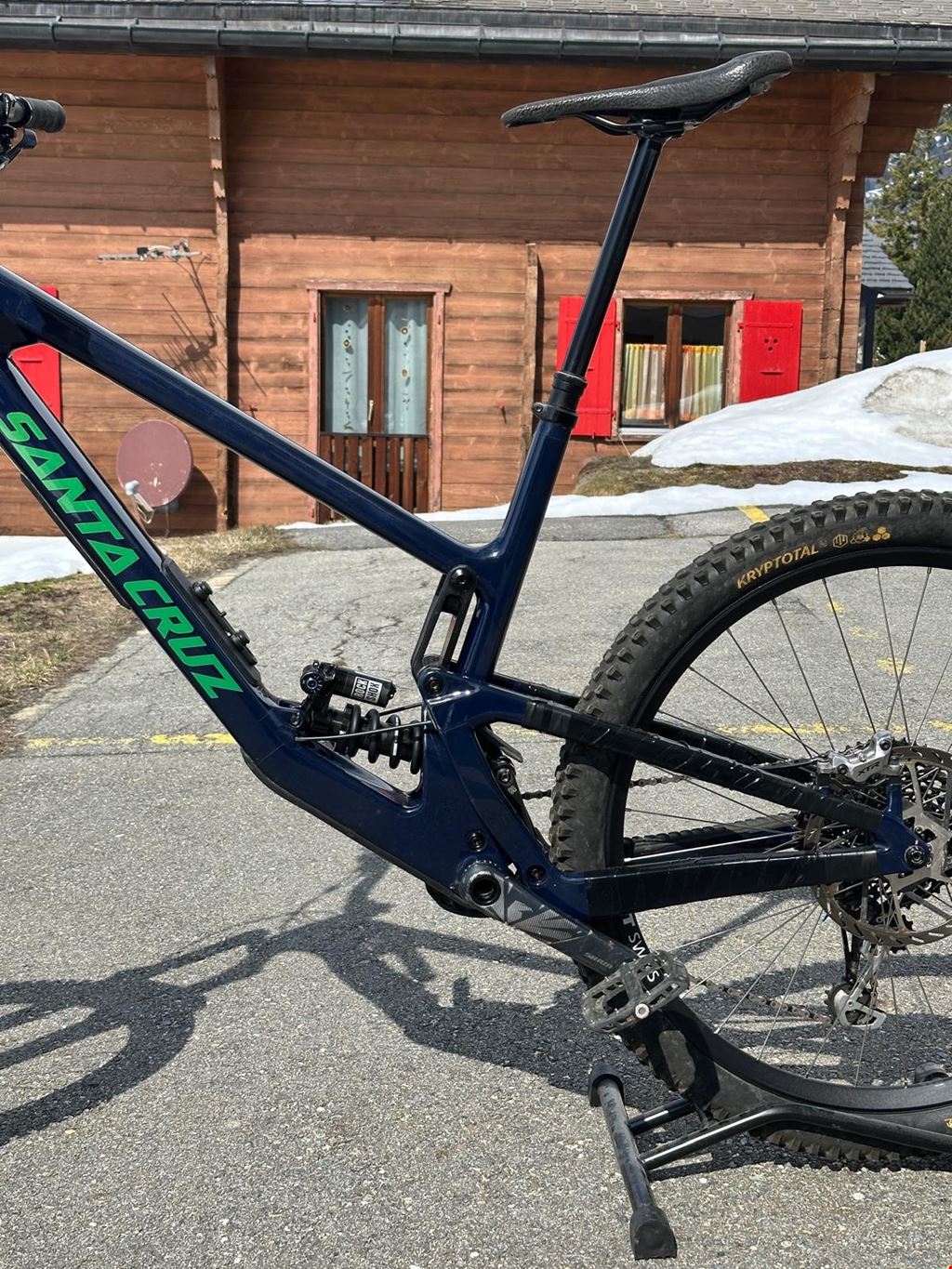 - Verkaufe mein nur eine Saison gefahrenes Megatower in perfektem Zustand in der wohl schönsten Farbe. Das Bike wurde noch nicht bei Santa Cruz registriert, somit Garantie hier noch möglich. Rechnung ist natürlich vorhanden. Das Bike hat gerade erst einen grossen Service bekommen, wo alle nötigen Verschleissteile ersetzt wurden und alle Lager gereinigt und neu geschmiert wurden. Es wird entgegen der Abbildung mit einem quasi neuen Laufradsatz (Newmen Beskar) und neuen Maxxis Reifen sowie einem neuen OneUp Cockpit (Vorbau und Lenker) verkauft. Eine neue Fox 38 Factory kann gegen einen kleinen Aufpreis eingebaut werden. Es gibt minimale Gebrauchsspuren, aber es handelt sich nur um kleine Kratzer, welche zumeist in der Schutzfolie sind. Gerne schicke ich Detailbilder. Im Folgenden alle technischen Daten: • Marke: Santa Cruz • Modell: Megatower • Rahmengröße: XXL • Schaltung: SRAM GX, 12spd • Kurbel: Sram X01 Carbon • Bremsen: Shimano XTR, SRAM HS2 220mm Scheiben • Gabel: Rockshox ZEB Ultimate RC3 170mm (Service neu) • Dämpfer: RockShox Super Deluxe Ultimate Coil, 230x62.5 (Service neu, Custom tune) • Laufräder: Newmen Beskar neuwertig mit Maxxis Reifen • Laufradgröße: 29zoll • Dropper: One Up V3 240 • Lenker: OneUp 35mm Rise • Vorbau: OneUp 50mm • Grips: Santa Cruz House Grips • Farbe: Translucent Blue Das Fahrrad kann jederzeit Probe gefahren werden in Lörrach. Fahrrad wird ohne Pedale und mit einem neuen WTB Sattel verkauft.