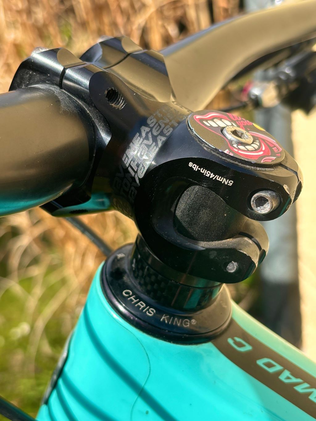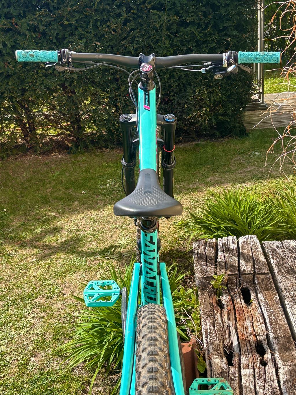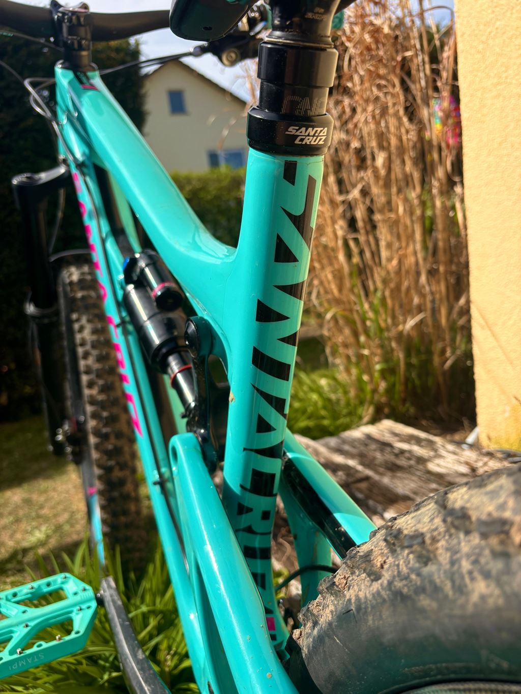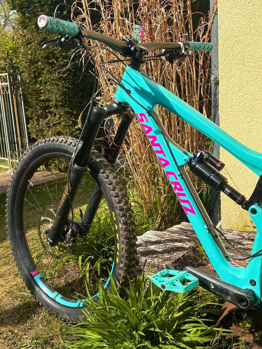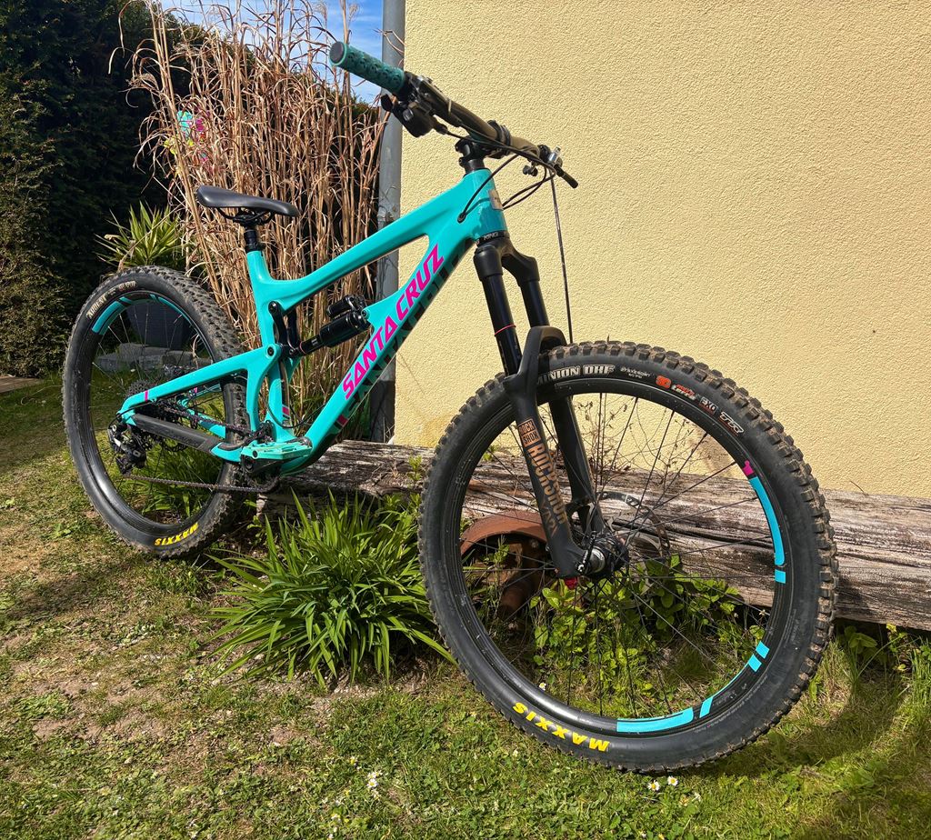 - Zum Verkauf steht mein Santa Cruz Nomad 3c mit top Ausstattung. Der Rahmen ist Größe M. montiert ist der ab Werk abgestimmte Rock Shox Monarch Dämpfer. gabel ist eine Rock Shox Yari . Laufradsatz besteht aus Chris King Naben und Enve Carbonfelgen. Fr: Maxxis Minion DHF 27,5 x 2,50 75% Profil. Hr: Maxxis Ardent 27,5 x 2,40 75% Profil. Schaltung ein XX1 Eagle mit XO 11fach. Gebremst wird mit der Shimano XT (Vr&Hr 203er Scheibe) Santa Cruz Carbonlenker. Steuersatz Chris King. Pedale Crankbrothers Stamp1 Dämpfer & Gabelservice neu. Schaltkranz wurde vor ca 200 km erneuert. Tubeless milch wurde diesen Monat erneuert. Sattel neu. Das Bike ist in super Zustand da abgeklebt. Dennoch wird es den ein oder anderen Steinschlag geben. Es funktioniert alles wie es soll. Ein Leichtes Verspieltes MTB für ordentlich Trail Spaß !!!! Farbe : Aqua-Mangenta-Pink