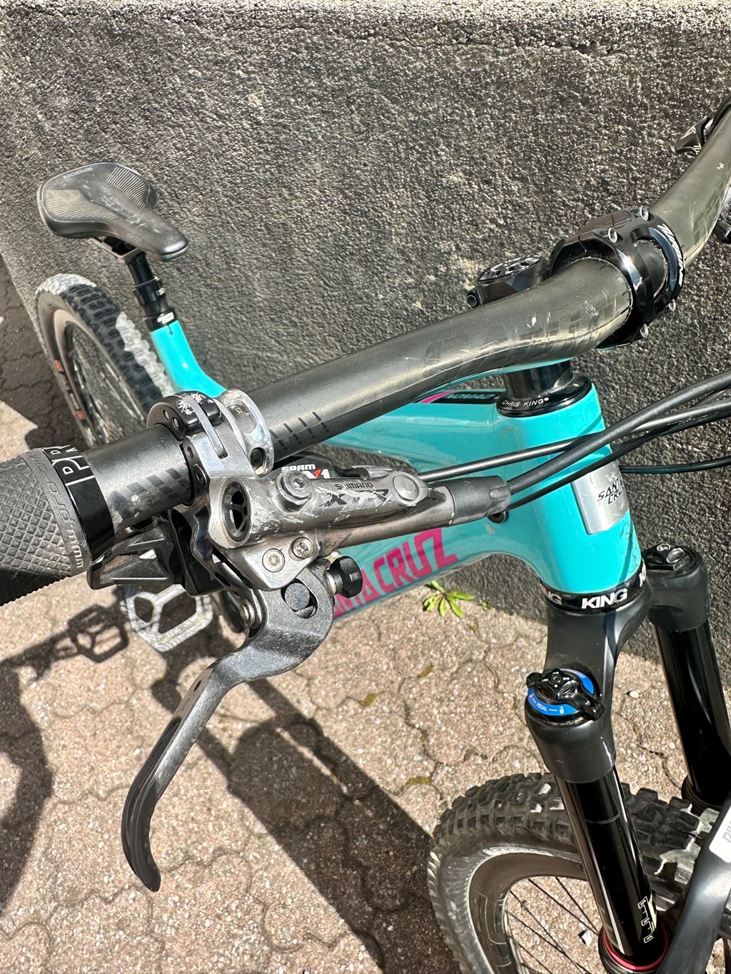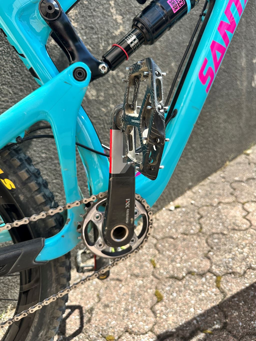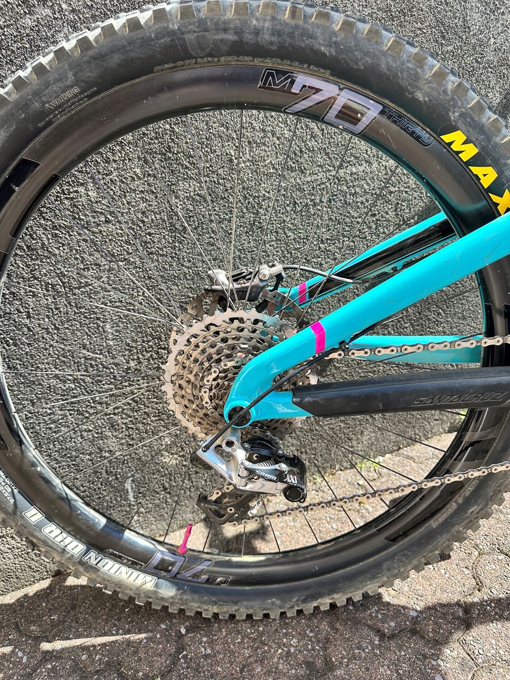 - Du suchst ein treuer Begleiter fürs grobe? Dann bist du hier richtig. Voll gestopft mit Highend Komponenten - 27.5 Zoll Carbon Laufräder Tubless - XTR 4 Kolben Bremsanlage - kompletter XX1 Antrieb - neue Variostütze von Pro - neue Atlas Pedale Ausstattung: Dämpfer RockShox Monarch Plus RC3 Gabel RockShox Pike RCT3 160mm Hedset Chris King Lenker Santa Cruz Carbon Bremsen XTR 4 Kolben 203/180 Antrieb SRAM XX1 Eagle Räder ENVE M70 Carbon 27.5 Zoll Stütze Pro 150mm Das Bike ist komplett mit Invisiframe foliert. Der Rahmen hat keine Kratzer o.ä. Die Restlichen Teile haben normale Gebrauchsspuren.