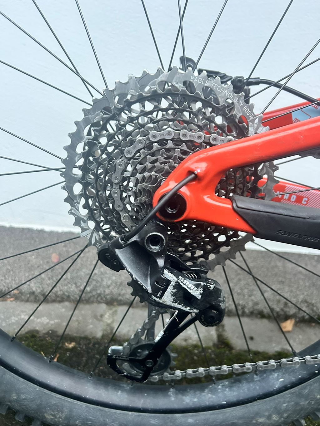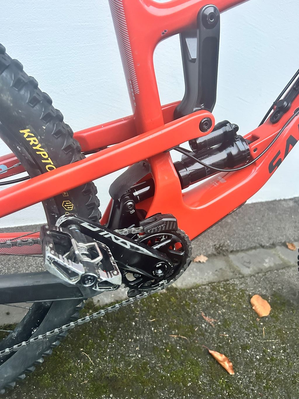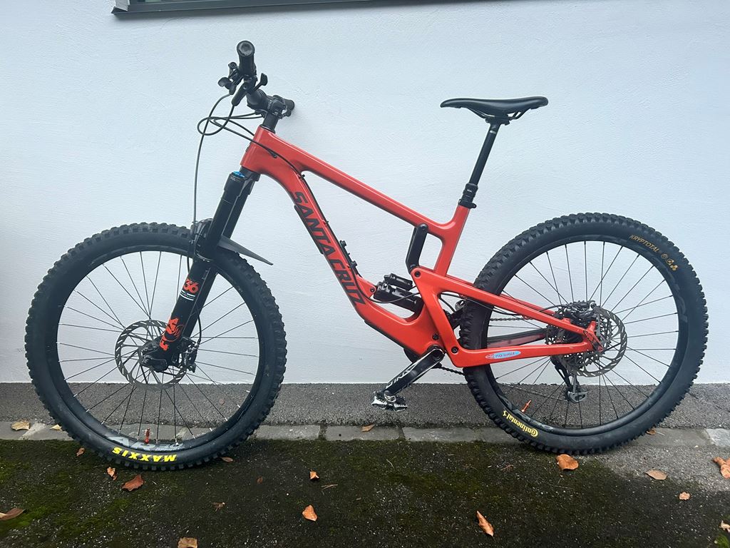 - Zu verkaufen, weil ich mich vor 1 Jahr gröber an der Schulter verletzt habe und das Bike seit dann leider nicht gebraucht wird. Habe es geliebt! Direkt ab grossem Service (Bremse entlüftet, neue Bremsbelege, tlw. neue Lager, Gabel/Sattelstütze gemacht etc.). Gekauft Herbst 2019 (NP ca. Fr. 8'000.00), Bike in gutem Zustand. Besichtigung in 8003 Zürich. Farbe: orange Grösse: M Gewicht: ca. 15 Gabel: Fox 36 Dämpfer: Super Deluxe Air R (NMD) Schaltwerk: SRAM GX 1x12 Bremse: Shimano XT (aufgerüstet) Radgrösse: 27.5 Federweg: 170mm Reifen: Maxxis Shorty (vorne), Continental Kryptotal (hinten)